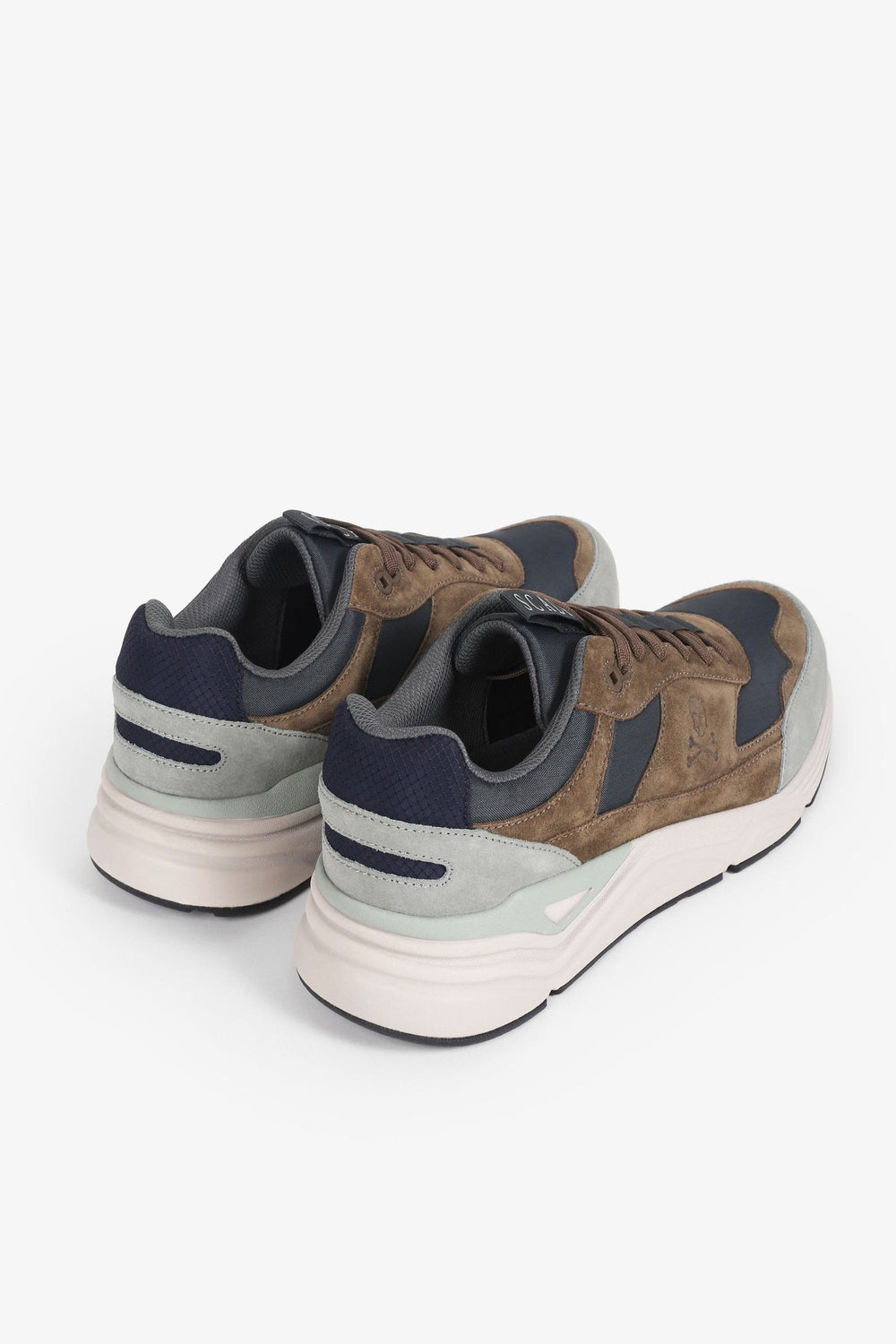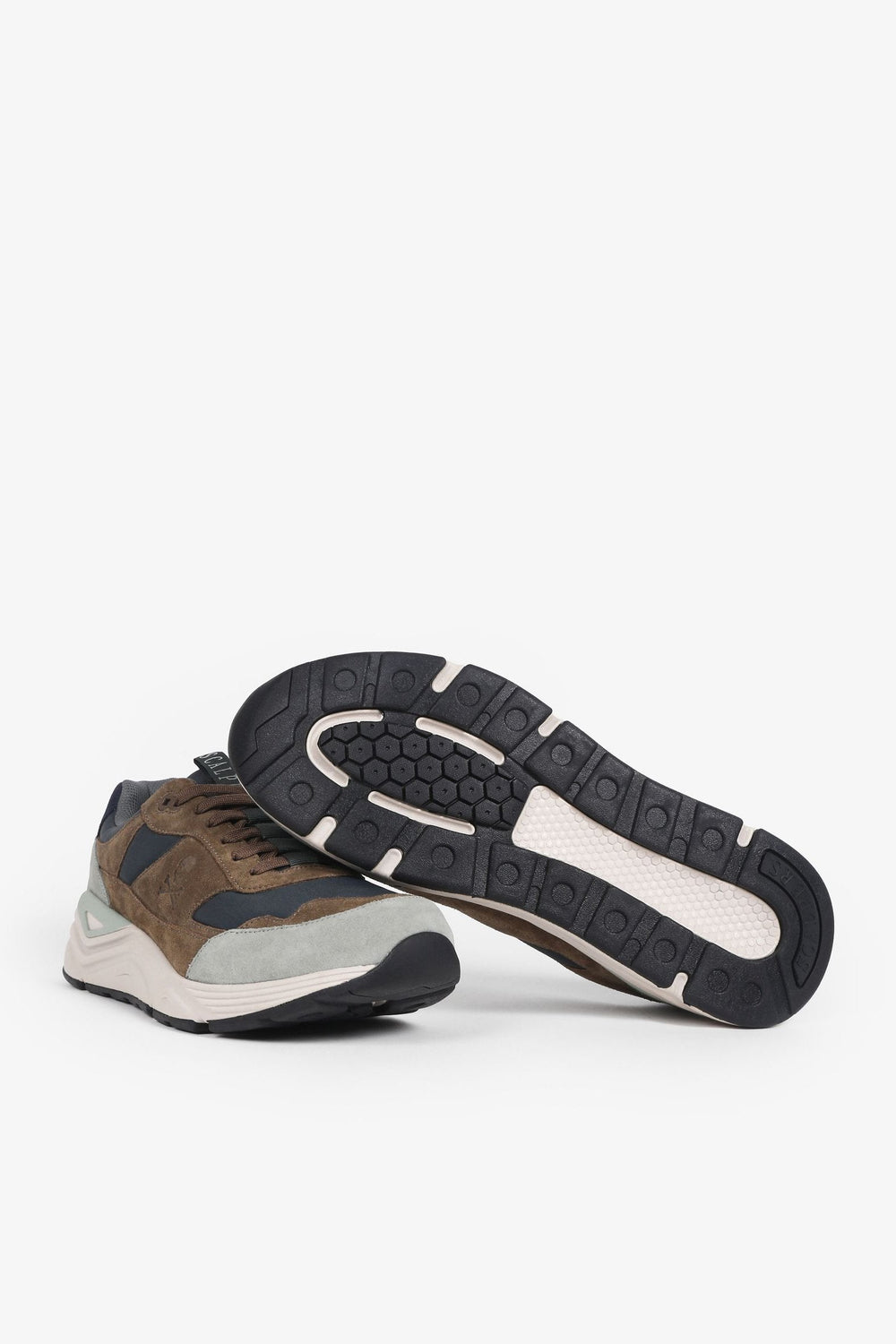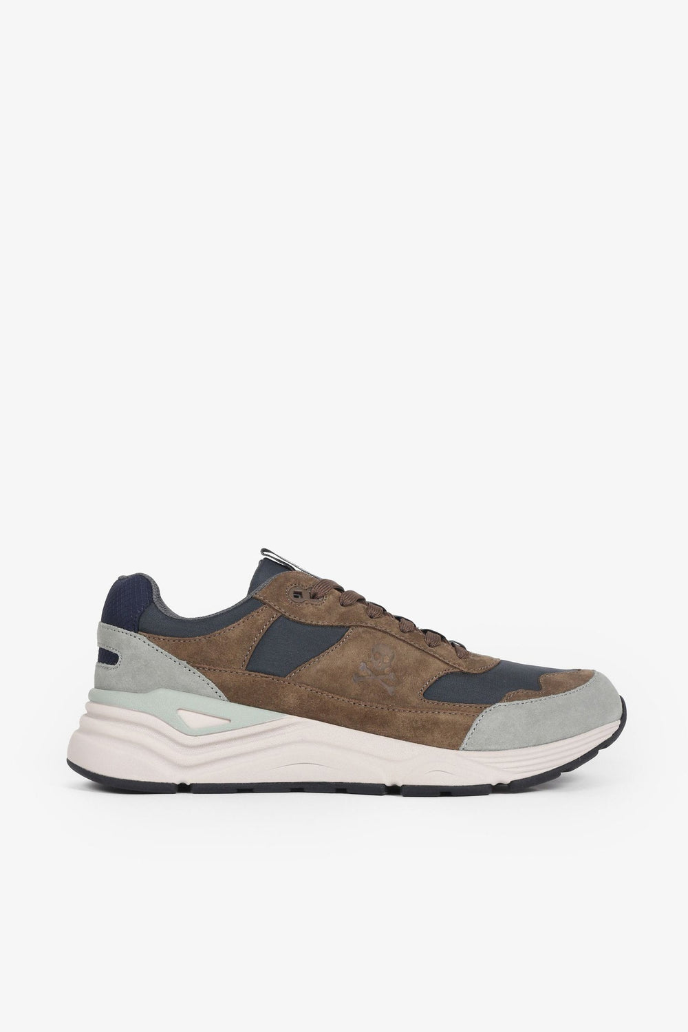 Sneakers confeccionadas en mezcla de ante y nailon. Cierre con cordones a tono y suela con volumen de goma.