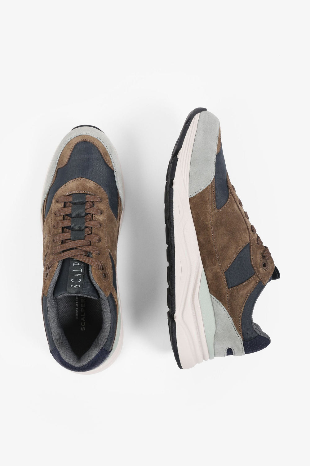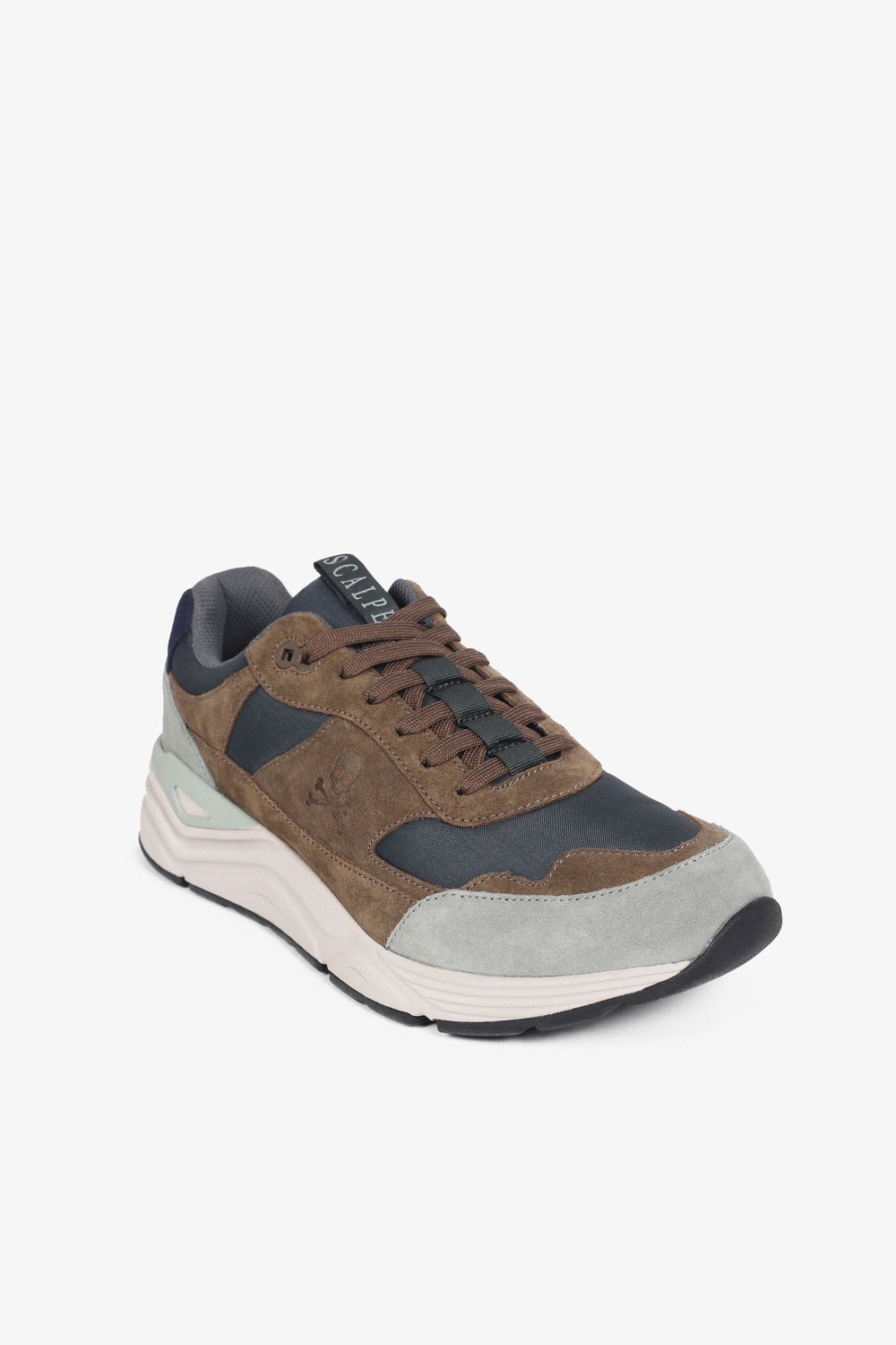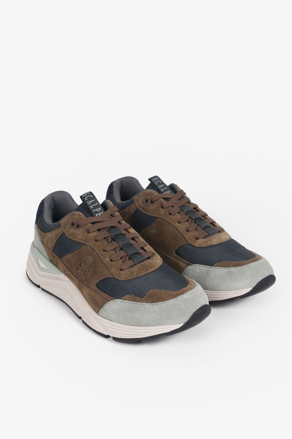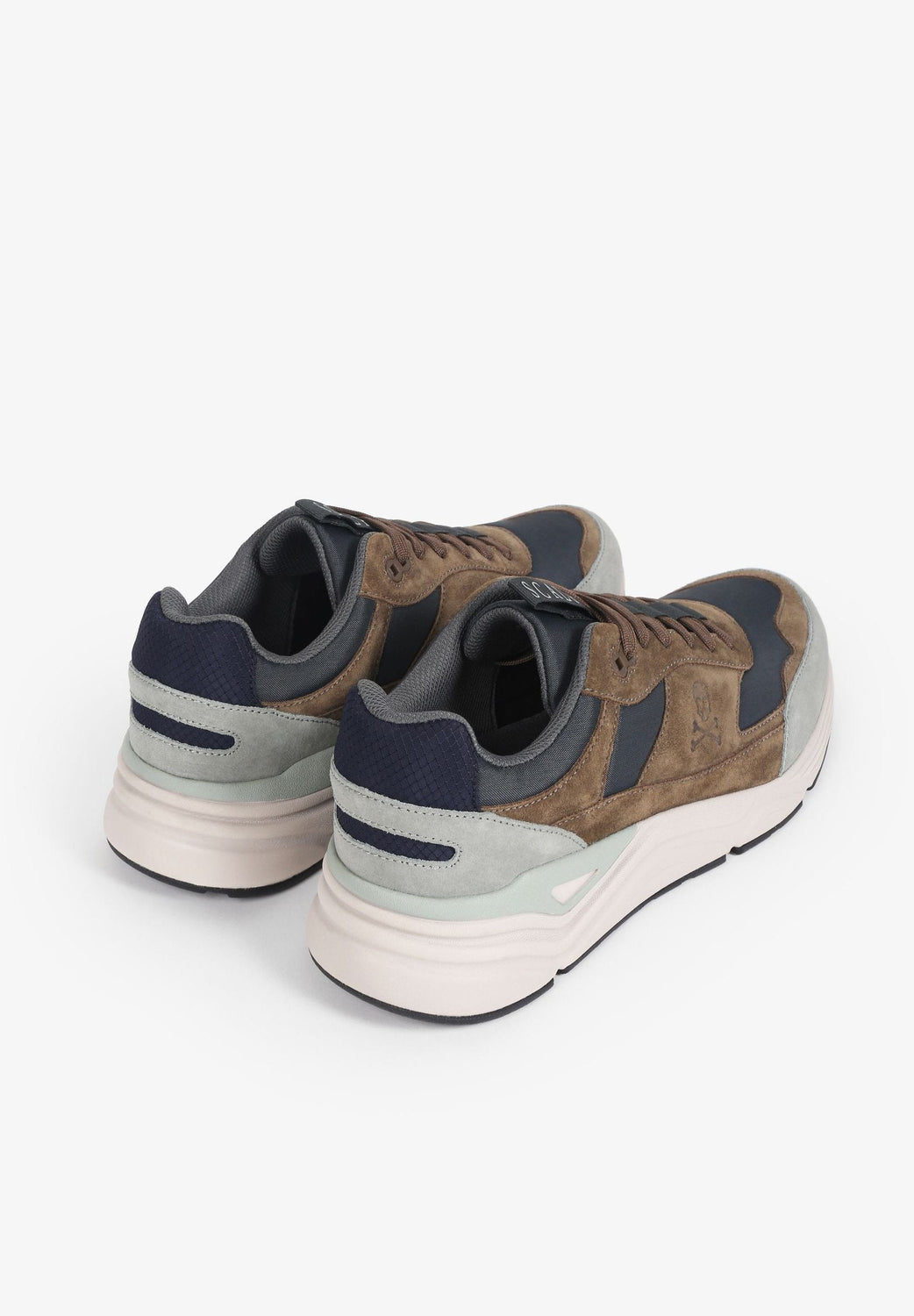 Sneakers confeccionadas en mezcla de ante y nailon. Cierre con cordones a tono y suela con volumen de goma.