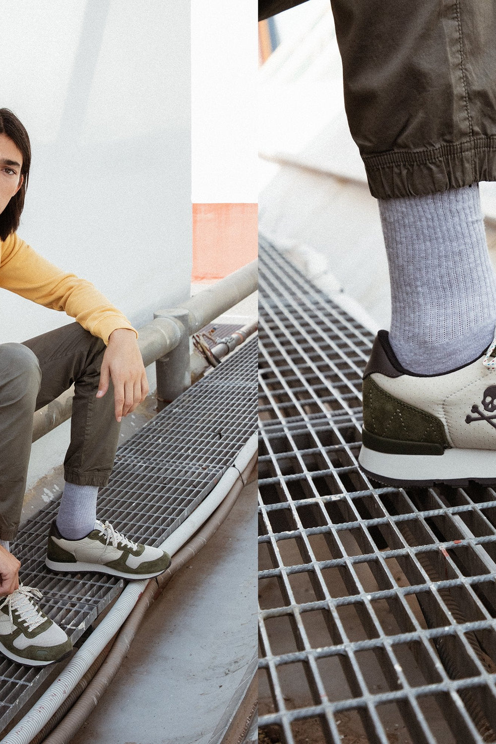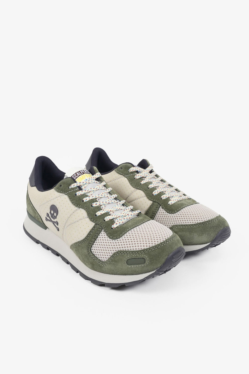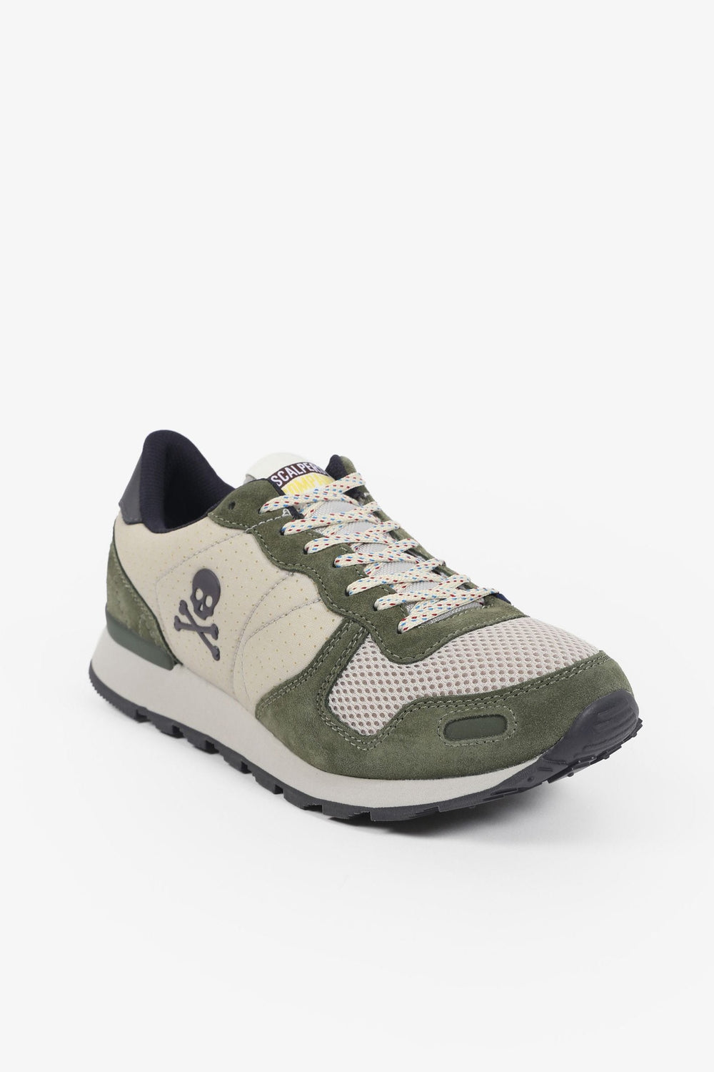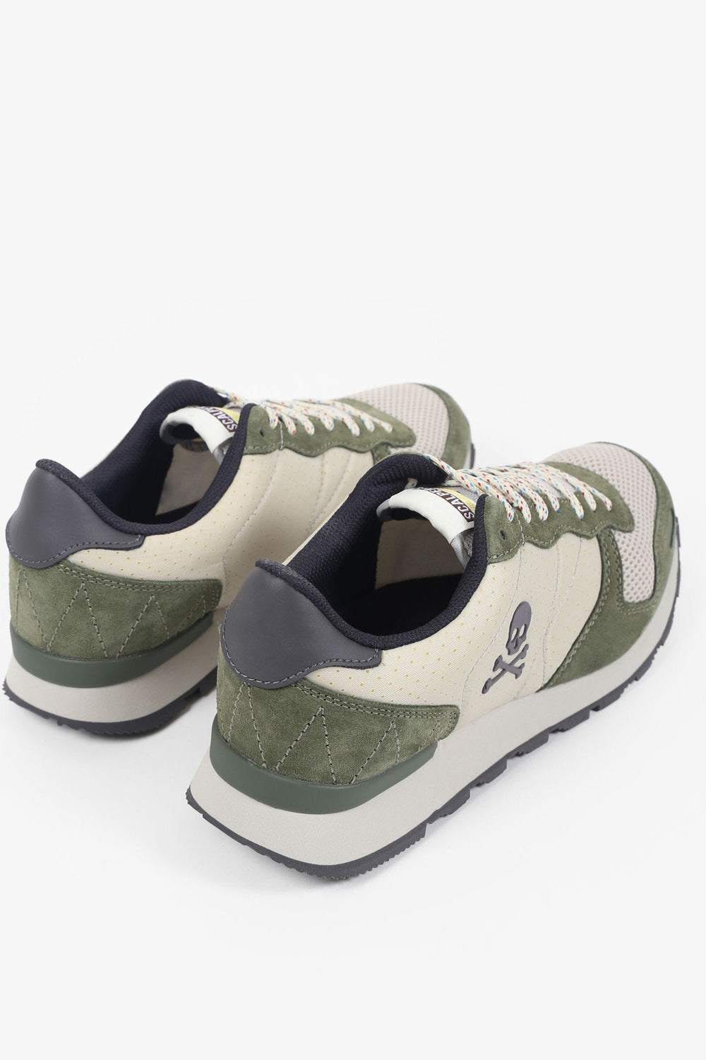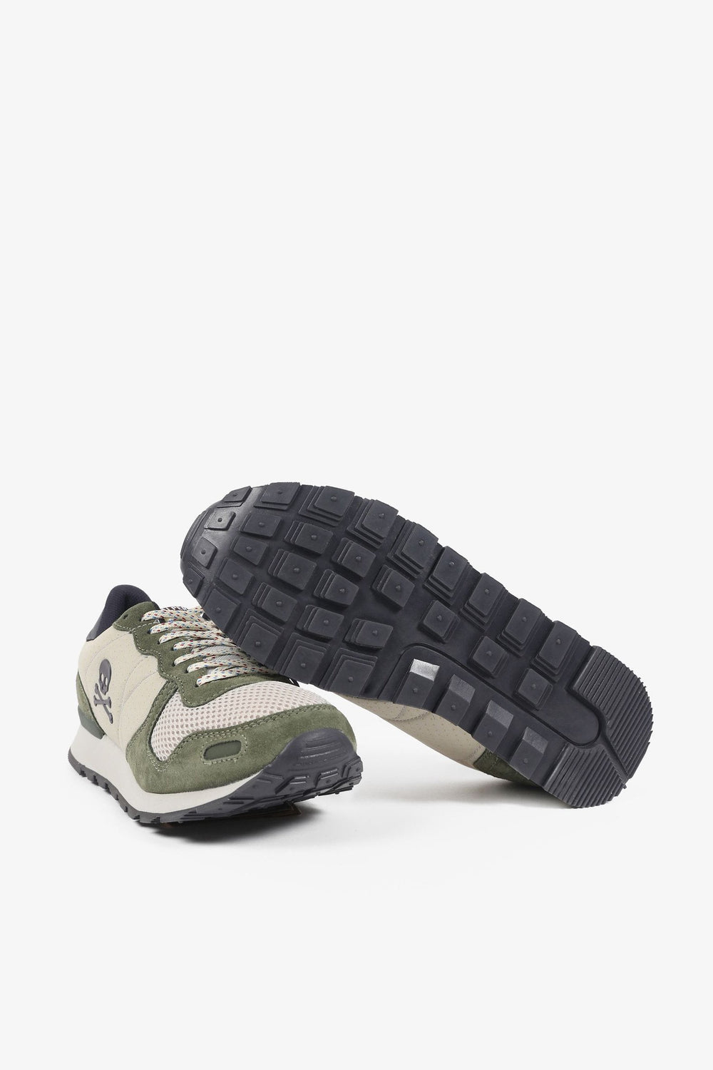 Sneakers confeccionadas en tejido combinado de piel en serraje y nailon. Cierre con cordones a tono, malla en la parte delantera y suela de goma a contraste. Detalle de calavera lateral.