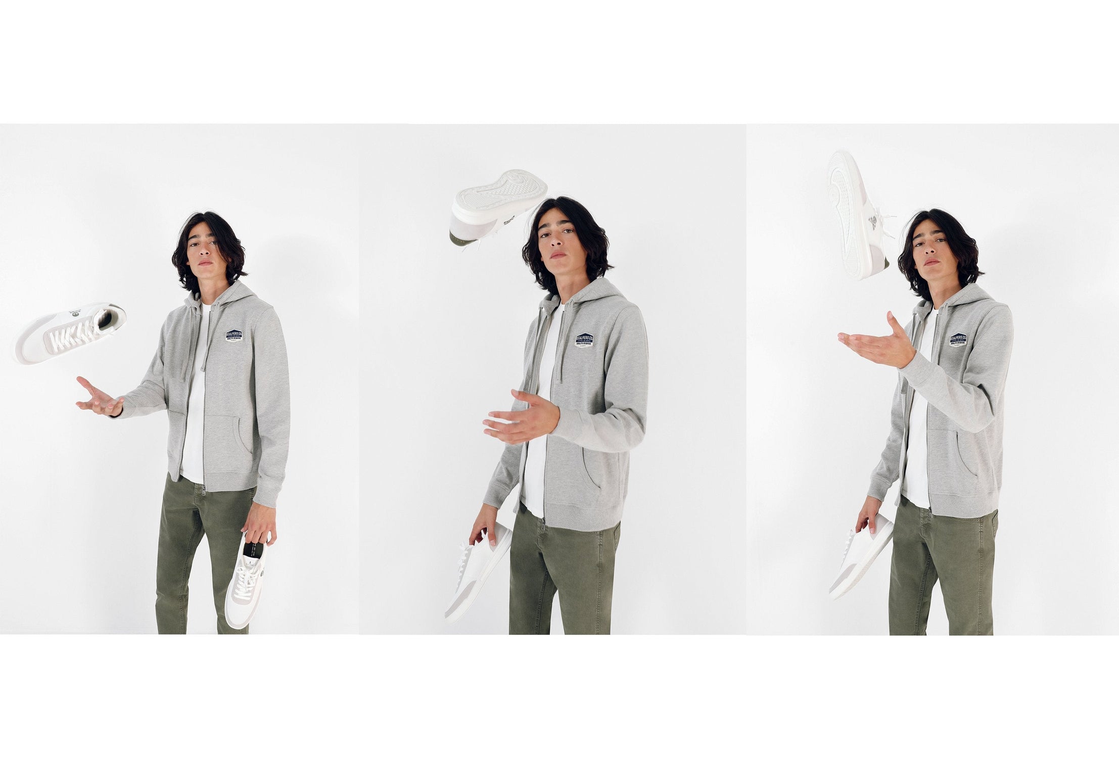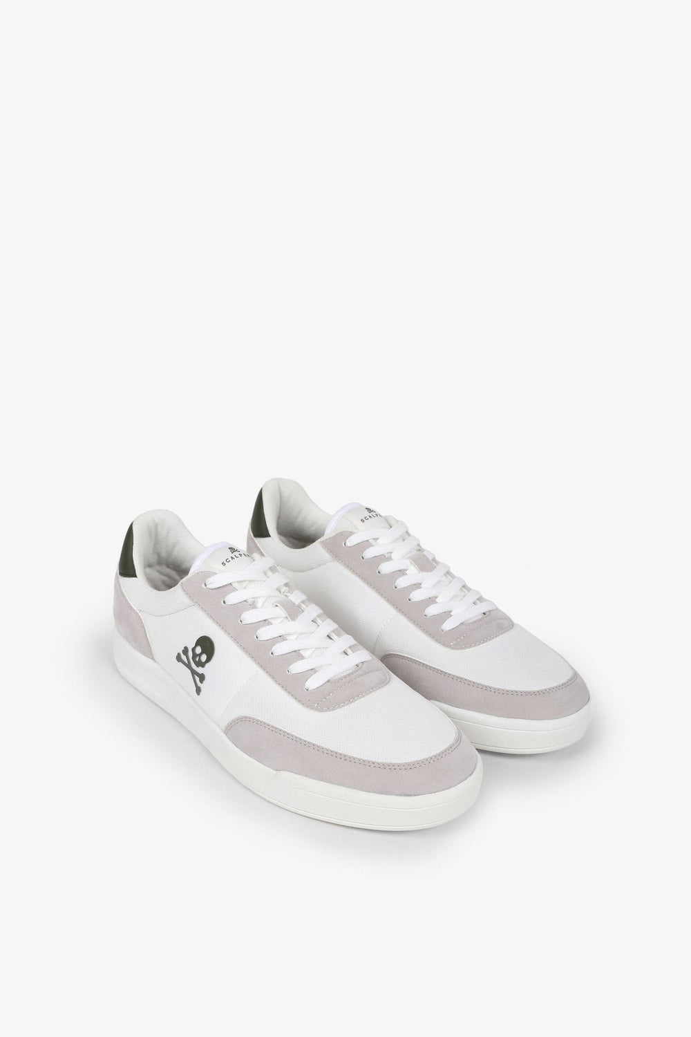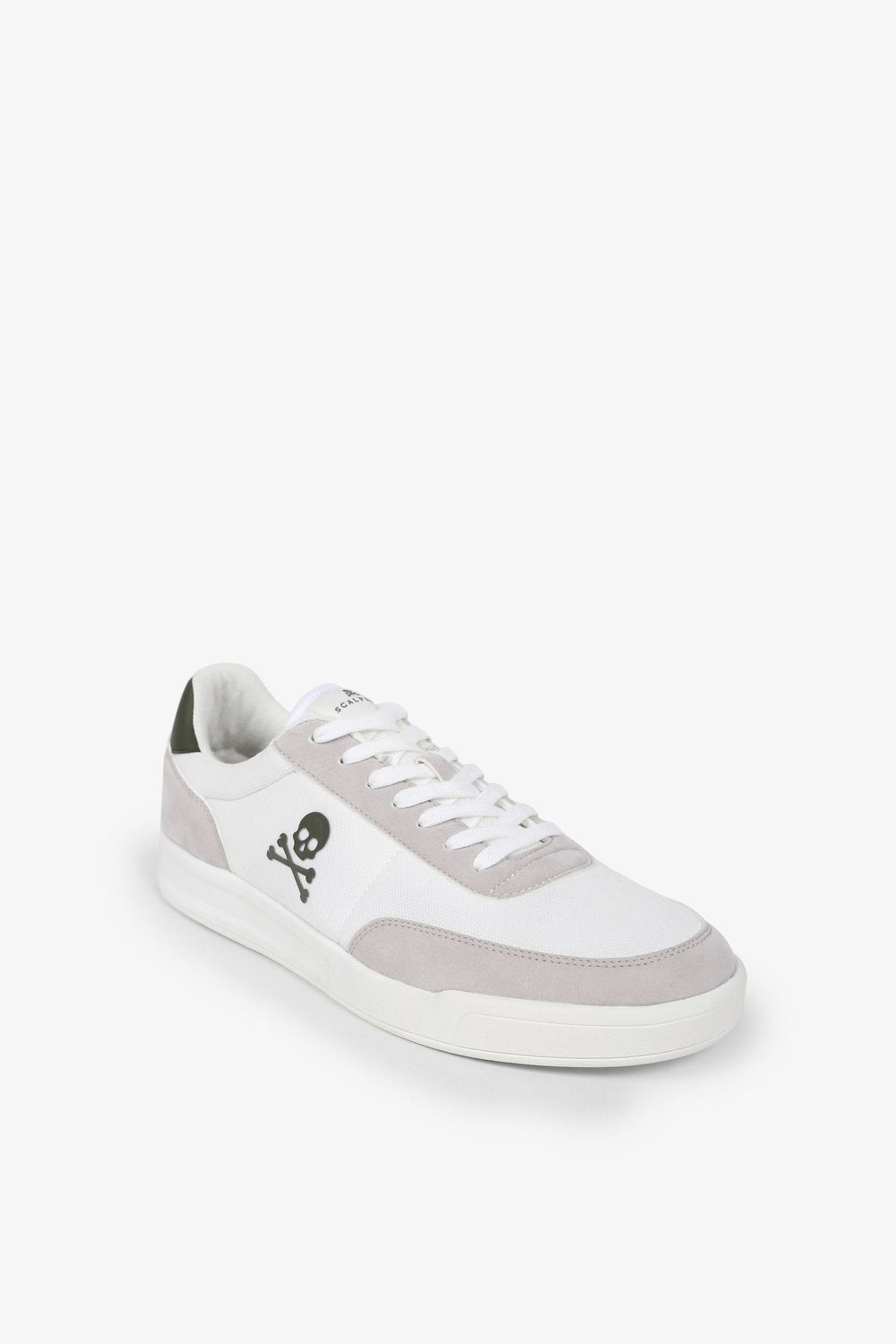 Sneakers confeccionadas en ante y piel. Cierre con cordones a tono, rejilla reciclada y suela de goma y phylon. Print de calavera lateral a contrate.