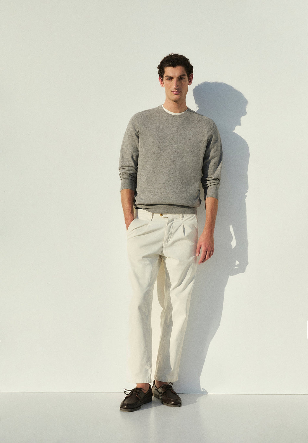 Pantalón chino confeccionado en mezcla de algodón BCI ligeramente elástico. Relaxed fit con pinzas, cierre con botón y cremallera y bolsillos laterales. Trabillas en cintura.