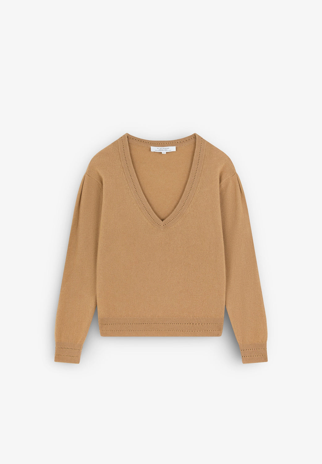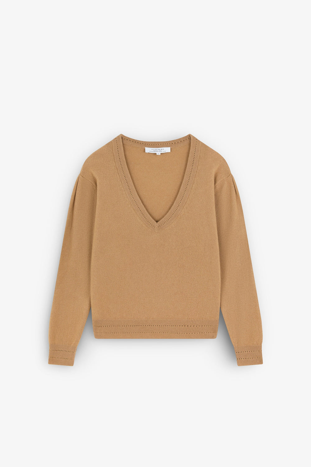 Jersey confeccionado en 100% cashmere. Regular fit, cuello de pico y manga larga.