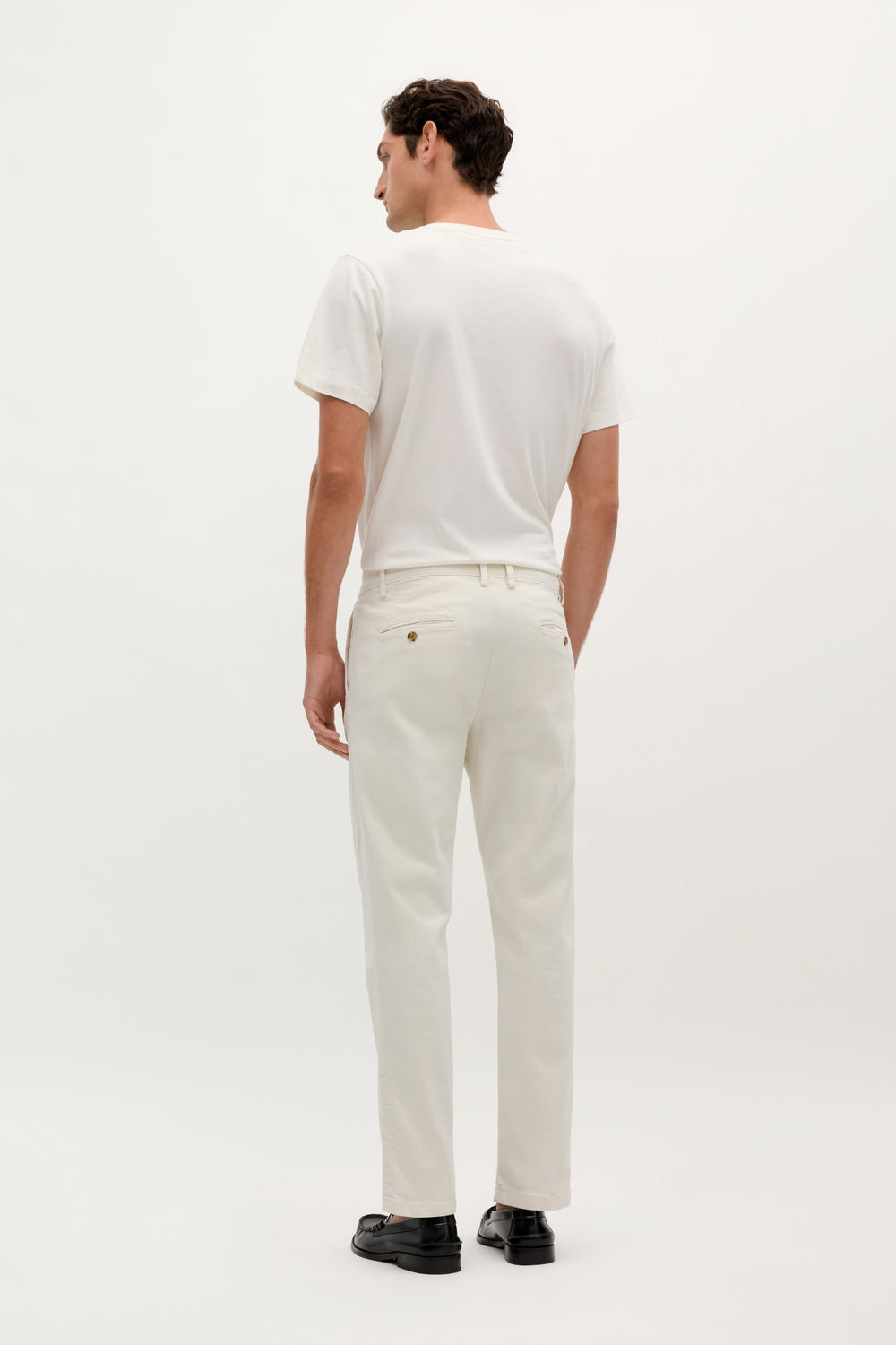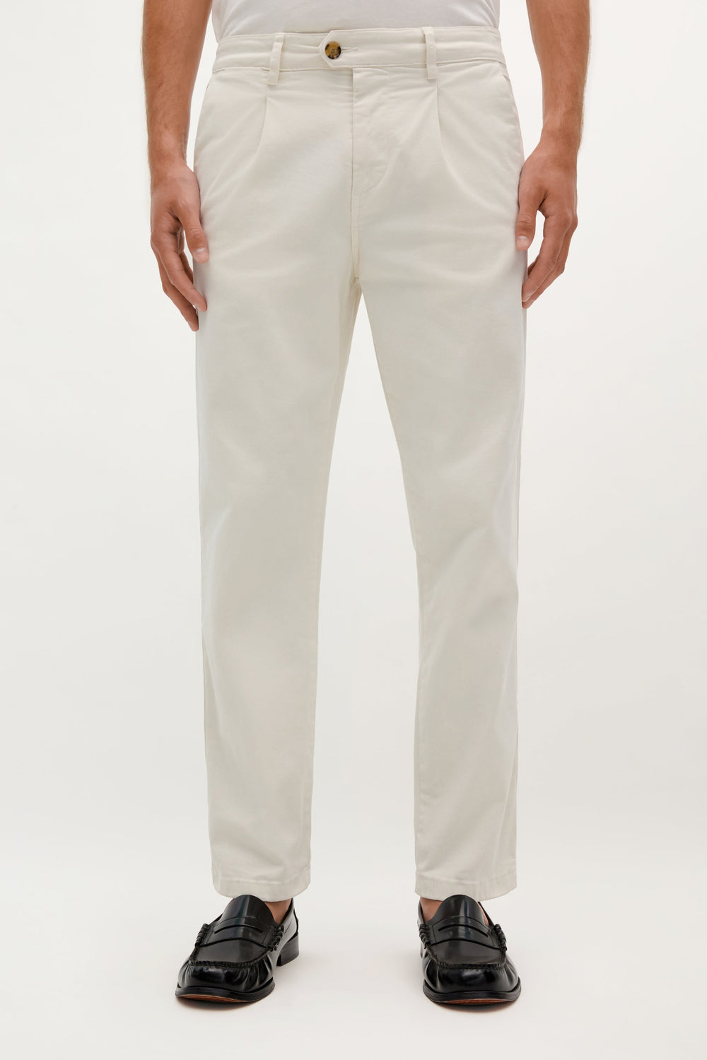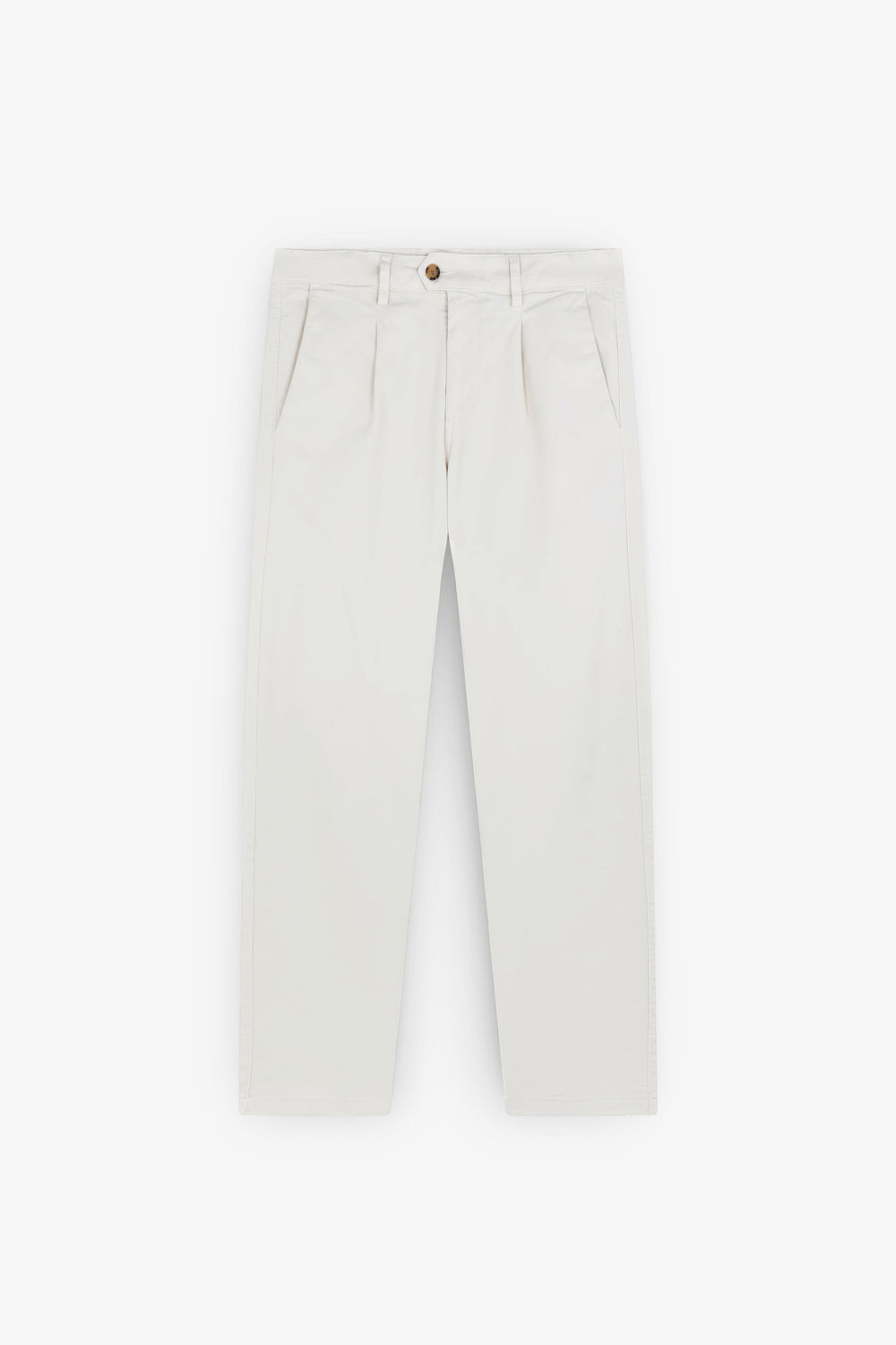Pantalón chino confeccionado en mezcla de algodón BCI ligeramente elástico. Relaxed fit con pinzas, cierre con botón y cremallera y bolsillos laterales. Trabillas en cintura.