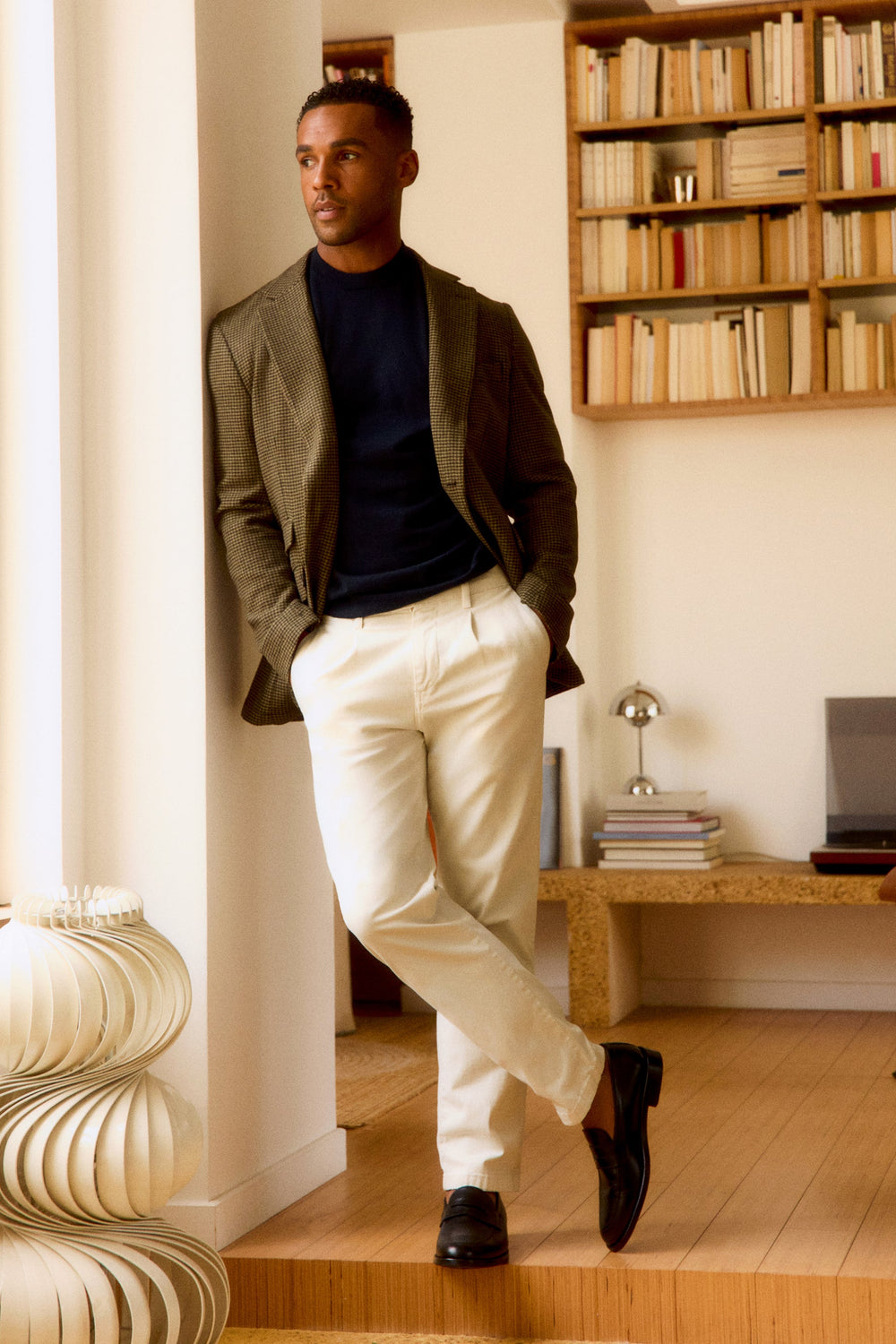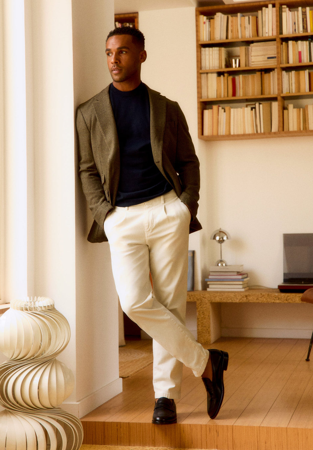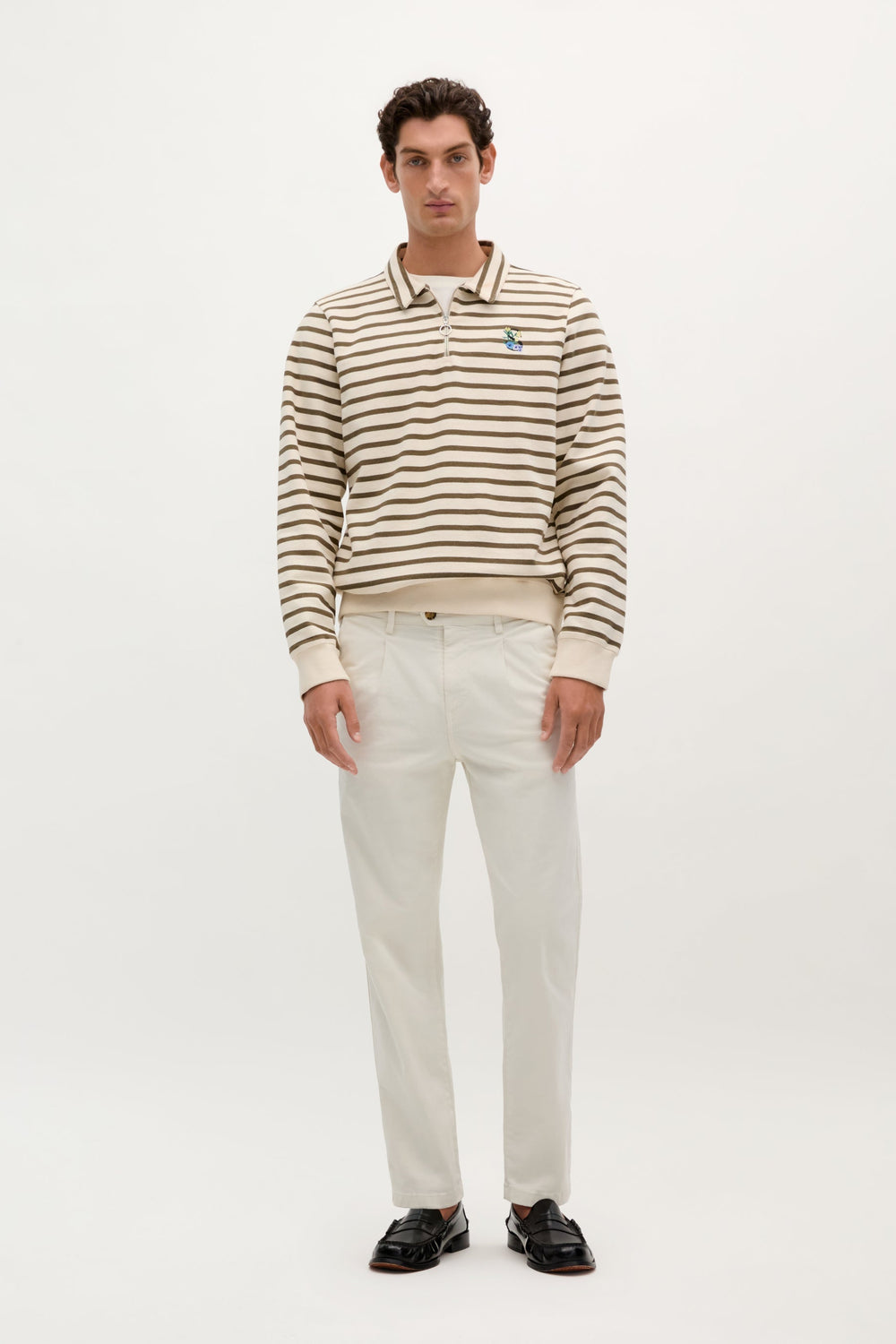 Pantalón chino confeccionado en mezcla de algodón BCI ligeramente elástico. Relaxed fit con pinzas, cierre con botón y cremallera y bolsillos laterales. Trabillas en cintura.