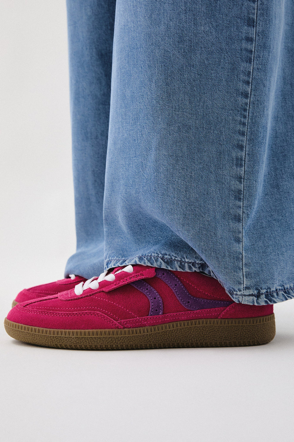 Zapatillas confeccionadas en 100% Serraje. Suela de goma a contraste. Detalle de logo en lateral, lengüeta y empeine a contraste. Detalle de costuras a tono.