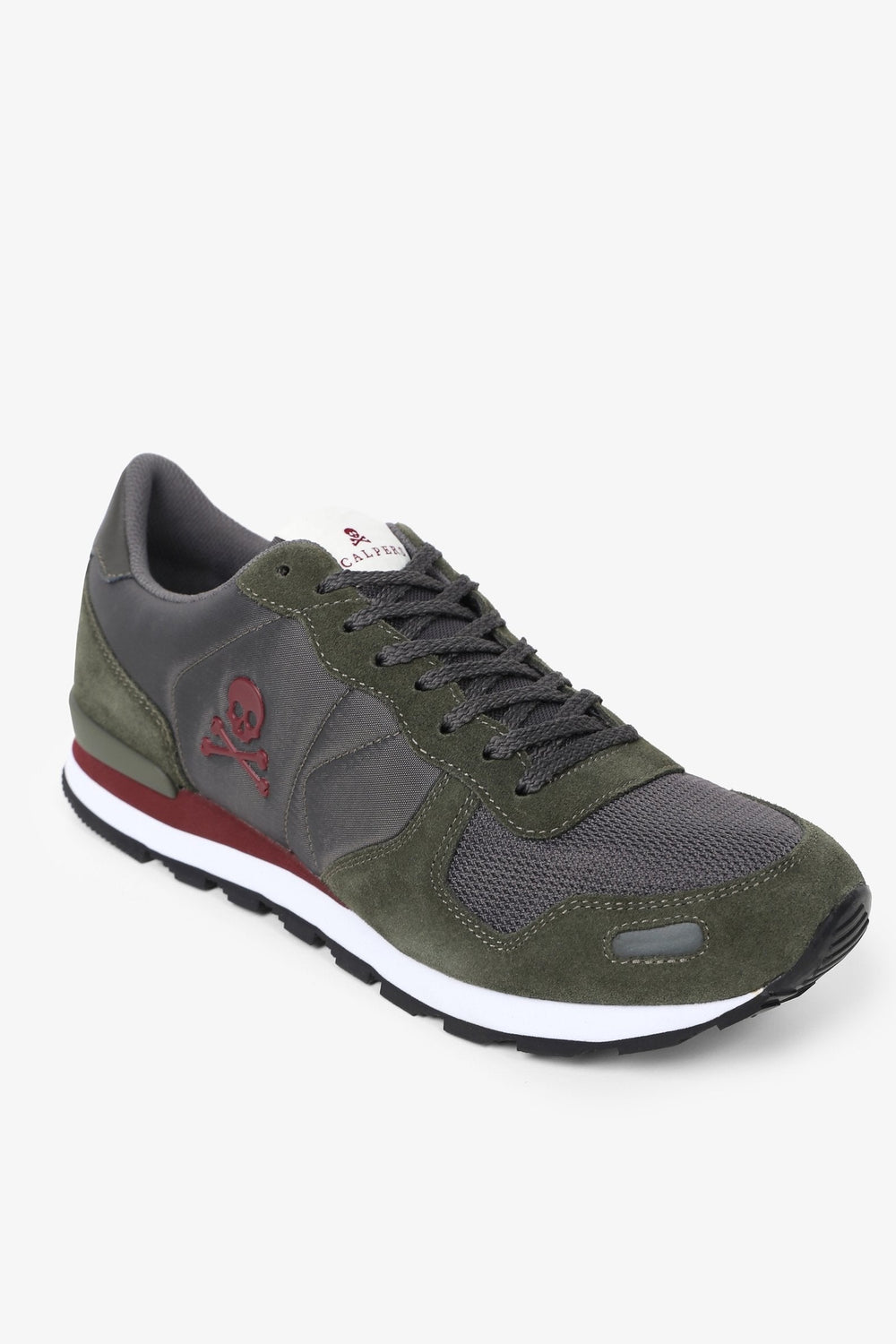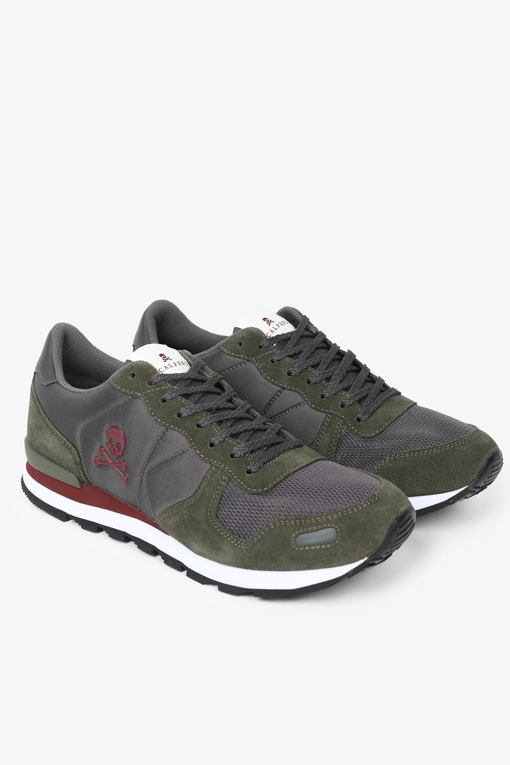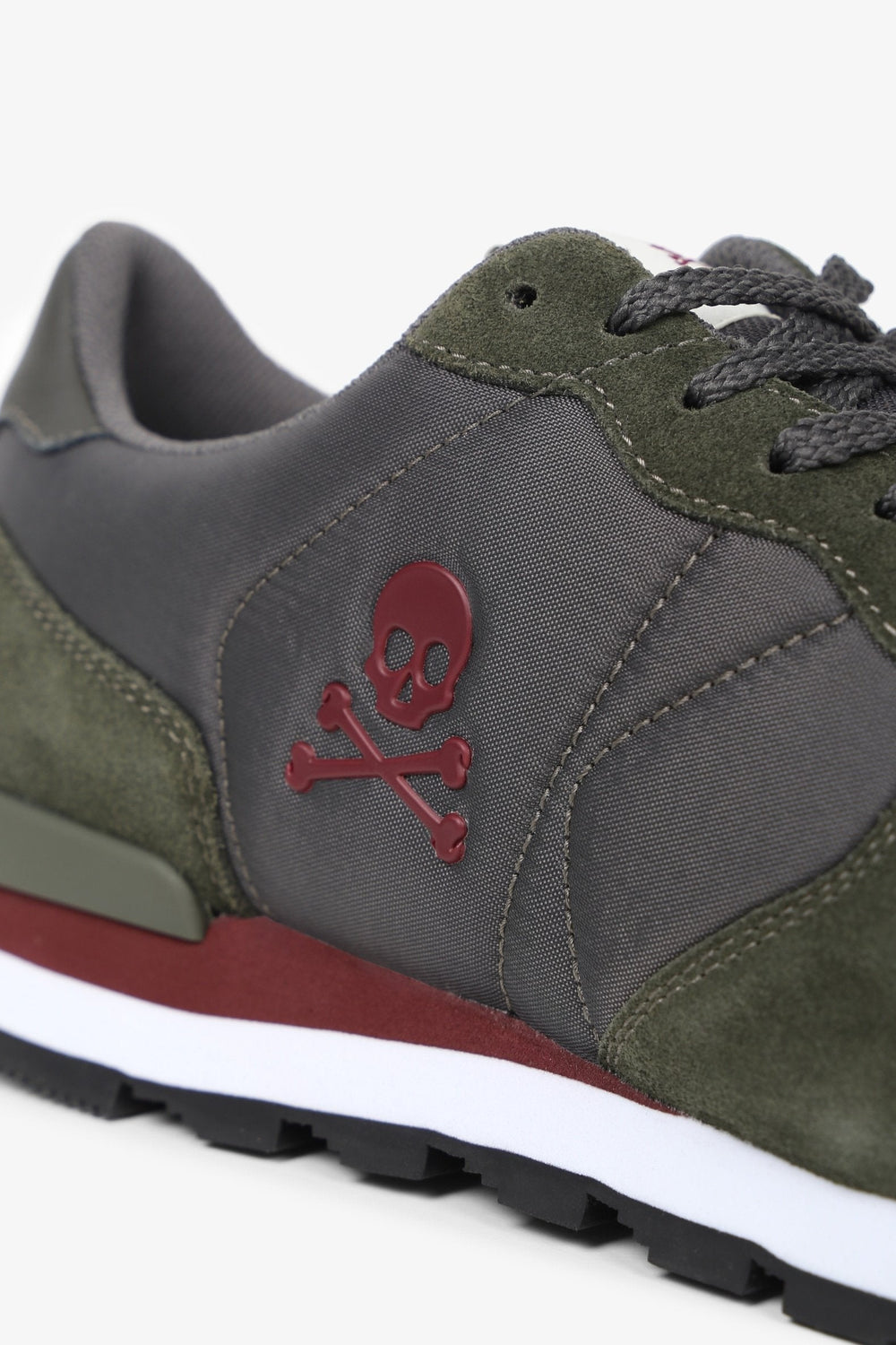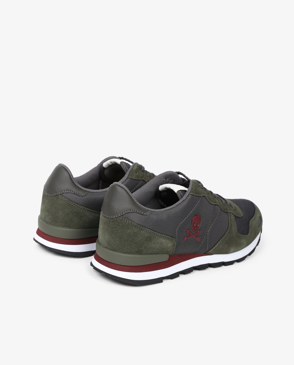 Zapatillas confeccionados en nylon y serraje. Cierre con cordones. Suela de goma y eva con estabilizador a contraste. Tejido transpirable de rejilla en pala, y calavera printeada en goma de alta densidad en el lateral.