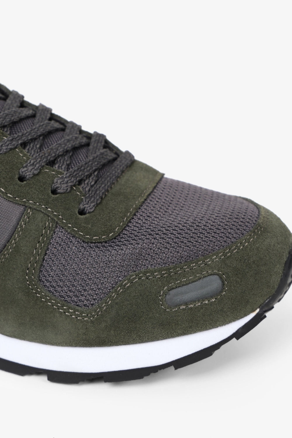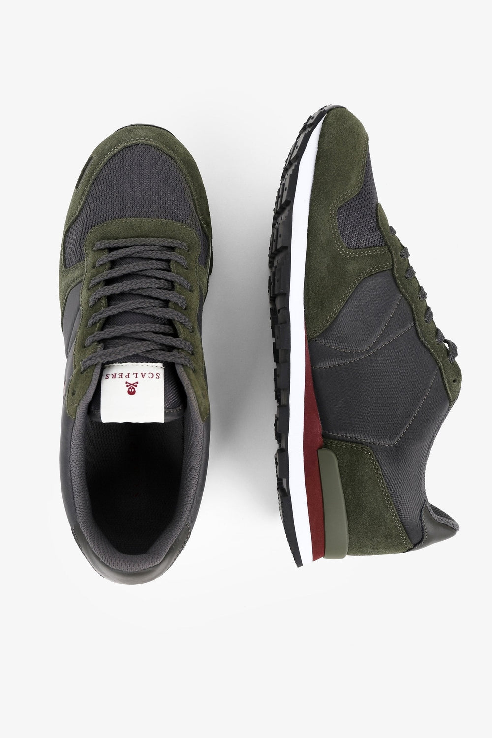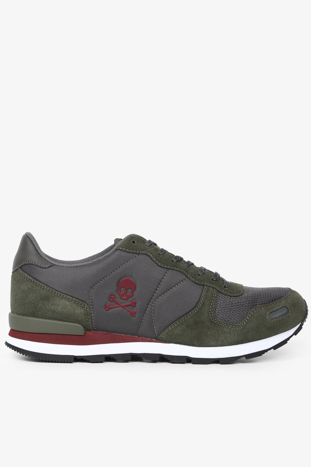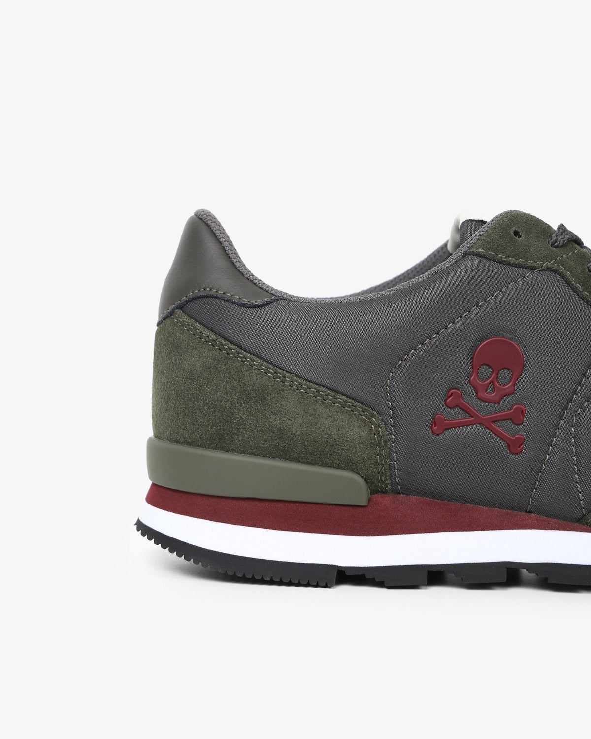Zapatillas confeccionados en nylon y serraje. Cierre con cordones. Suela de goma y eva con estabilizador a contraste. Tejido transpirable de rejilla en pala, y calavera printeada en goma de alta densidad en el lateral.