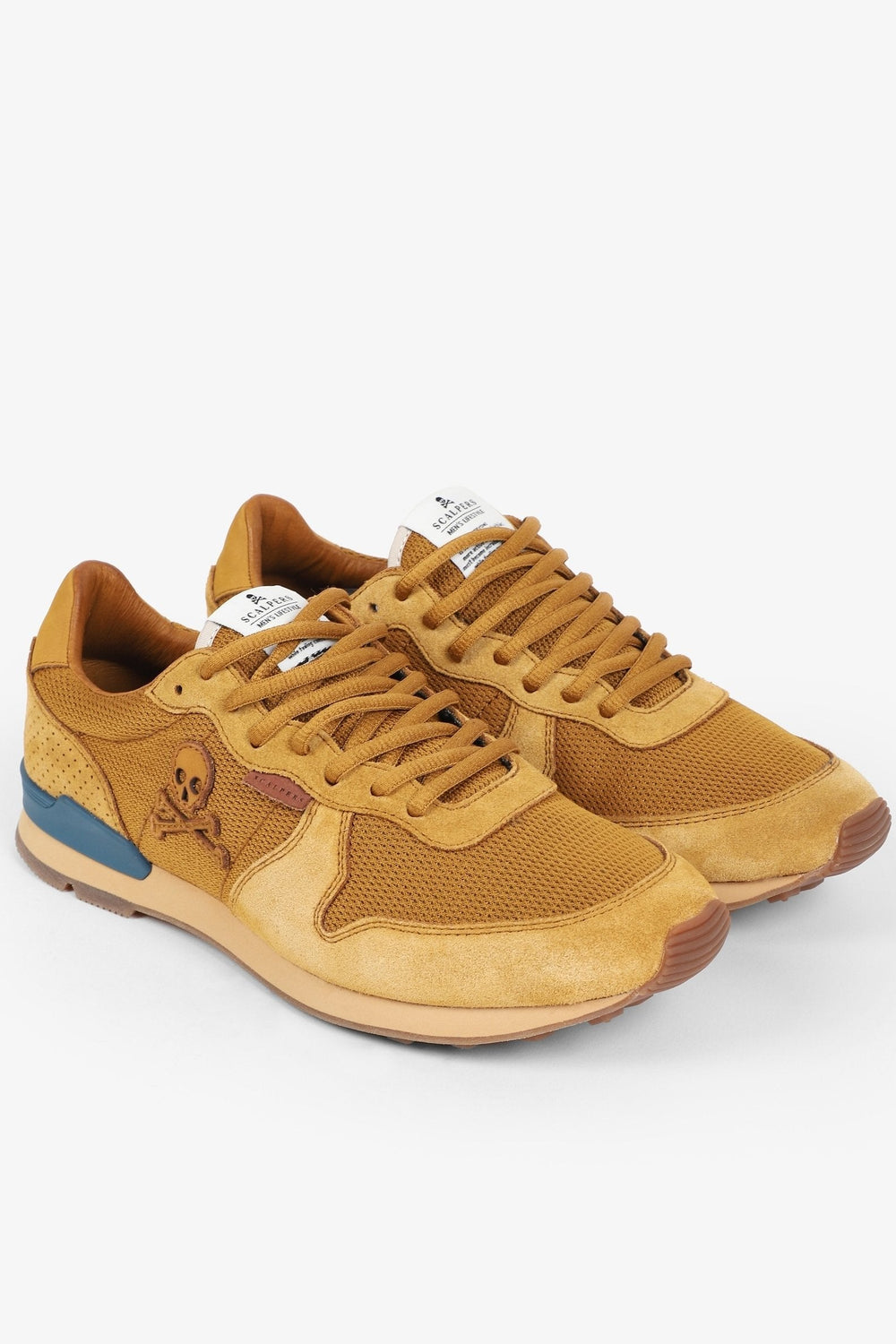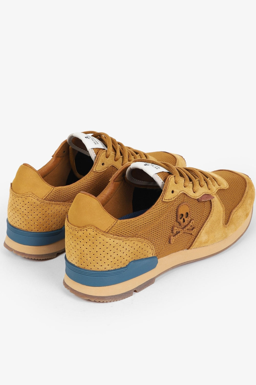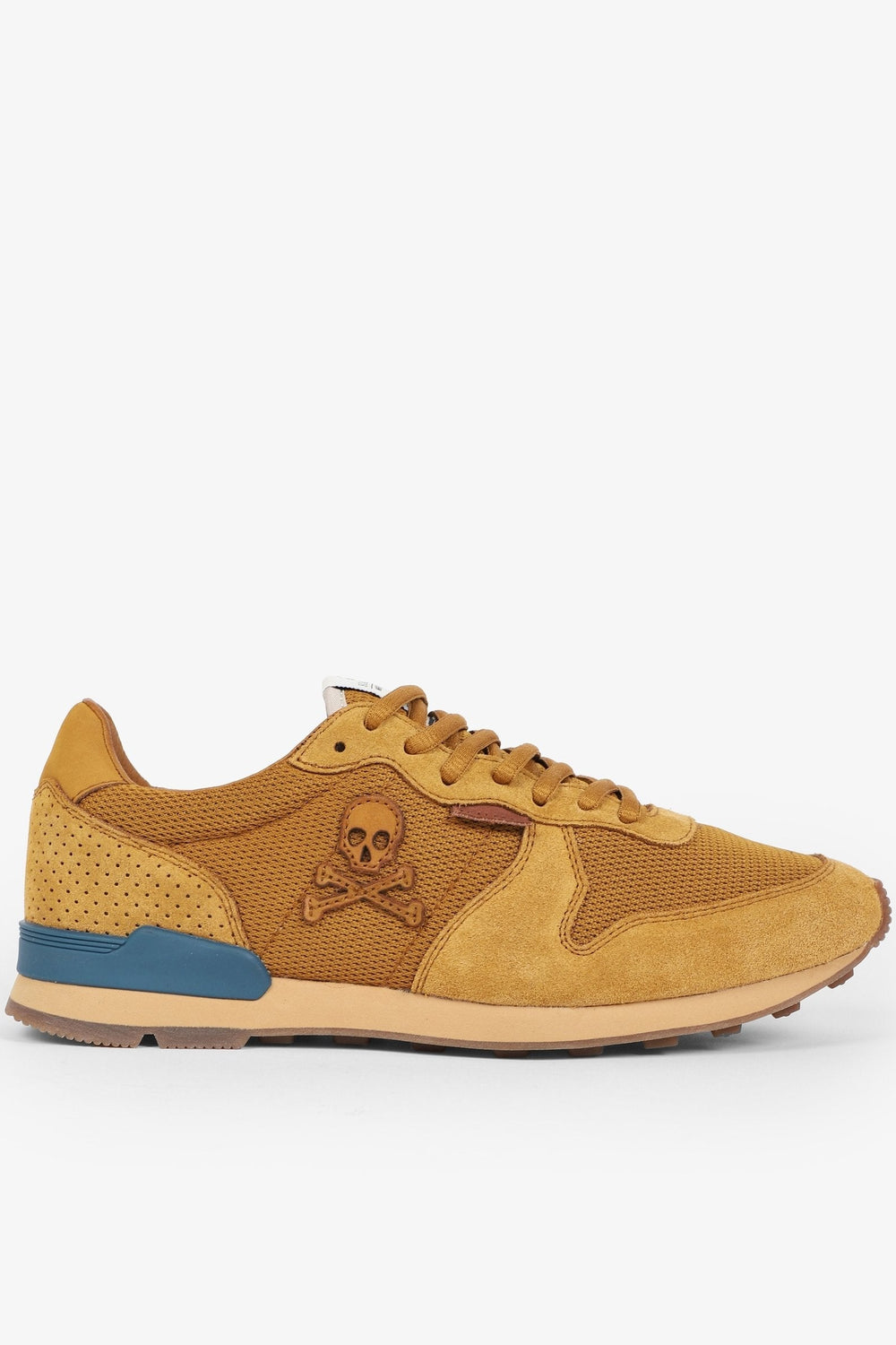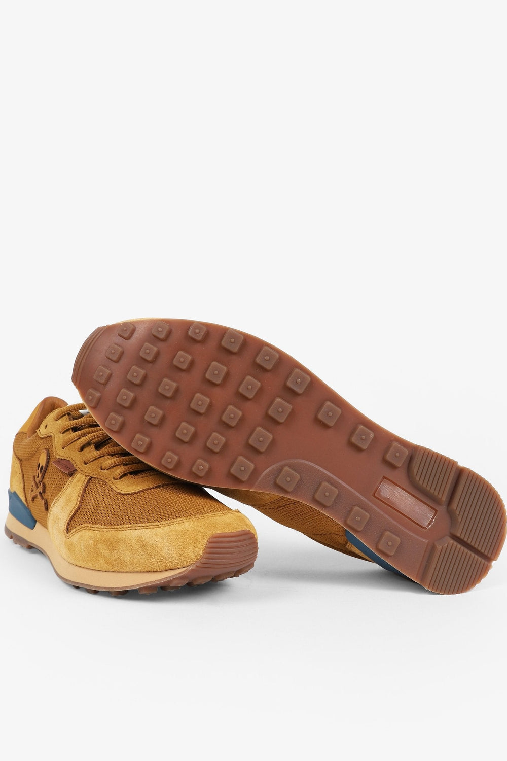 Zapatillas combinadas confeccionadas en serraje y rejilla. Cierra con cordones, suela de goma y eva con estabilizador a contraste. Calavera de parche bordada en el lateral.