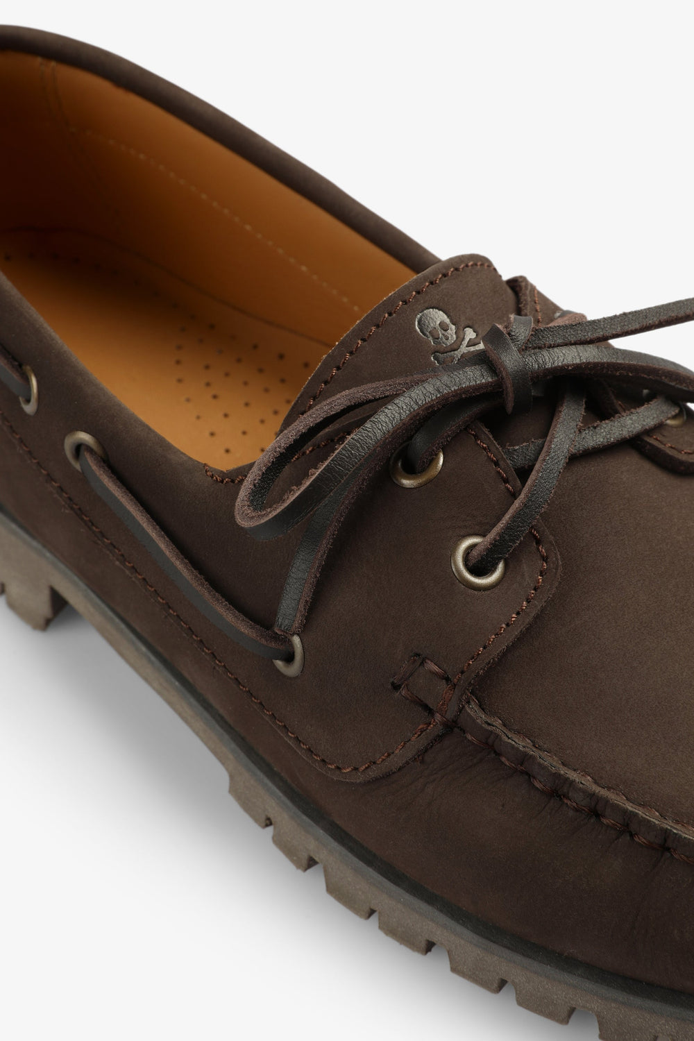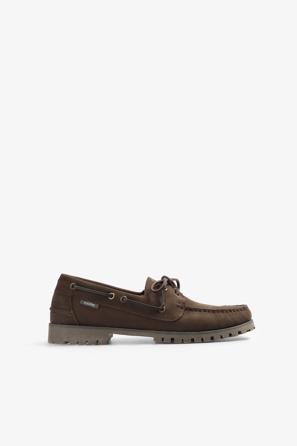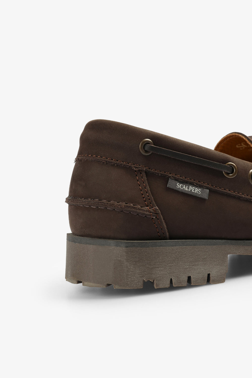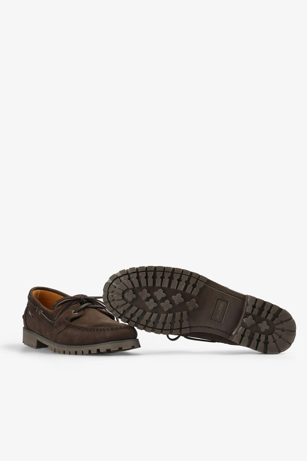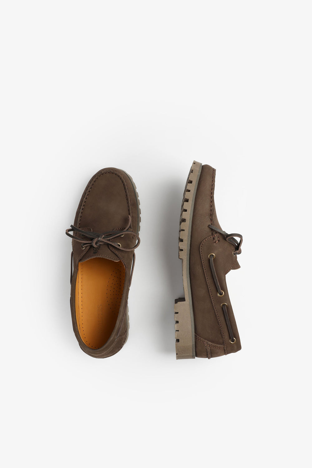 Zapatos tipo nauticos de piel. Cierre con cordones, suela dentada pronunciada. Etiqueta lateral.