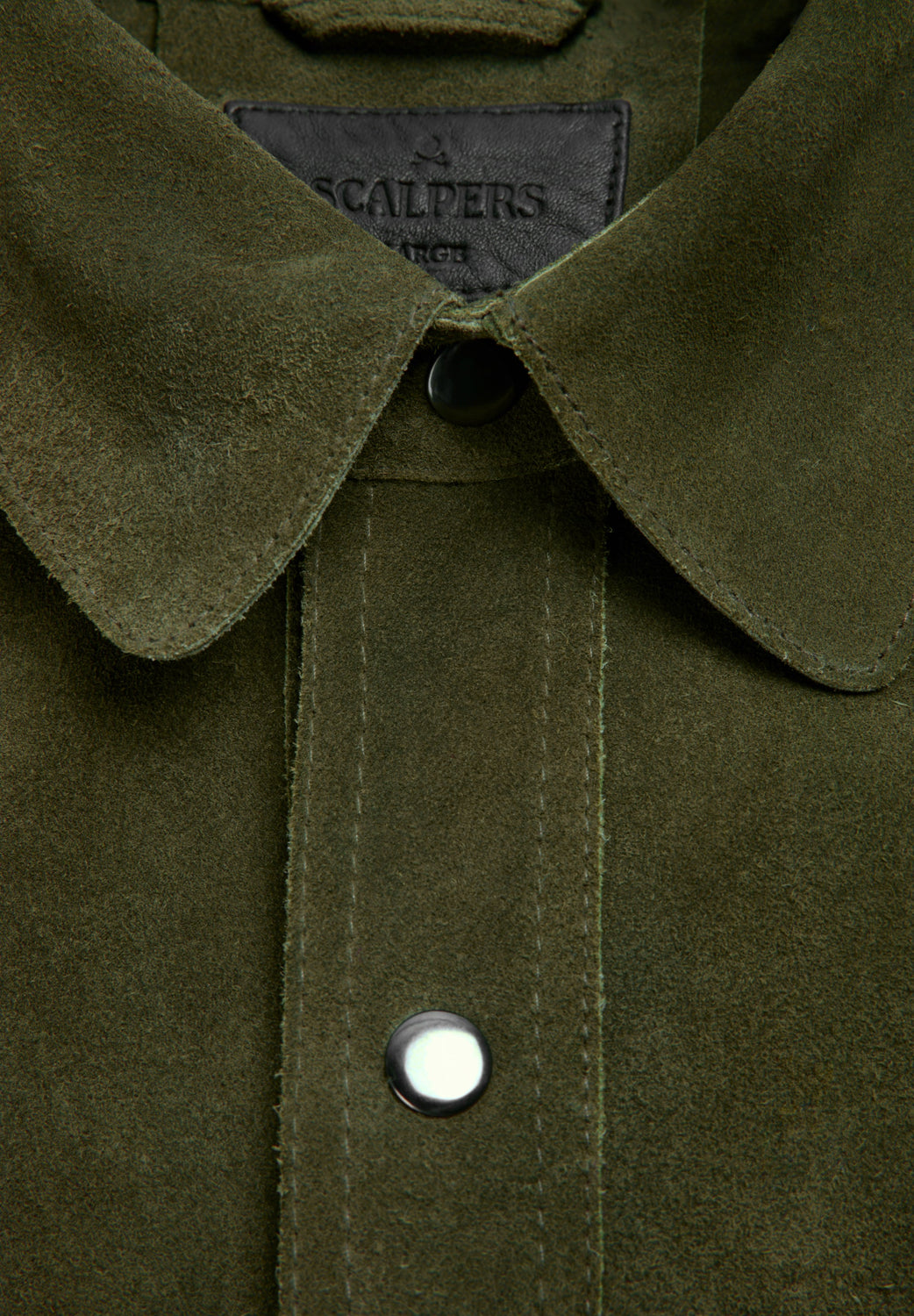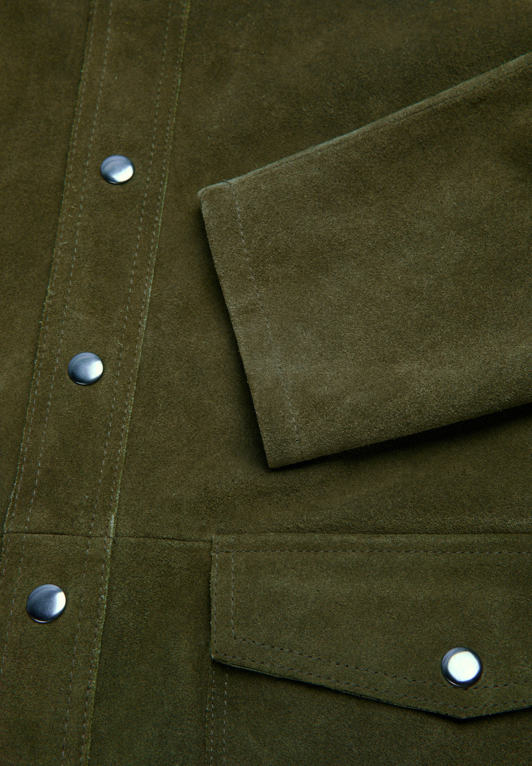 Chaqueta confeccionada en 100% piel. Regular fit, cuello ligeramente redondeado y cierre con snaps. Manga larga y bolsillos con tapeta y snaps.