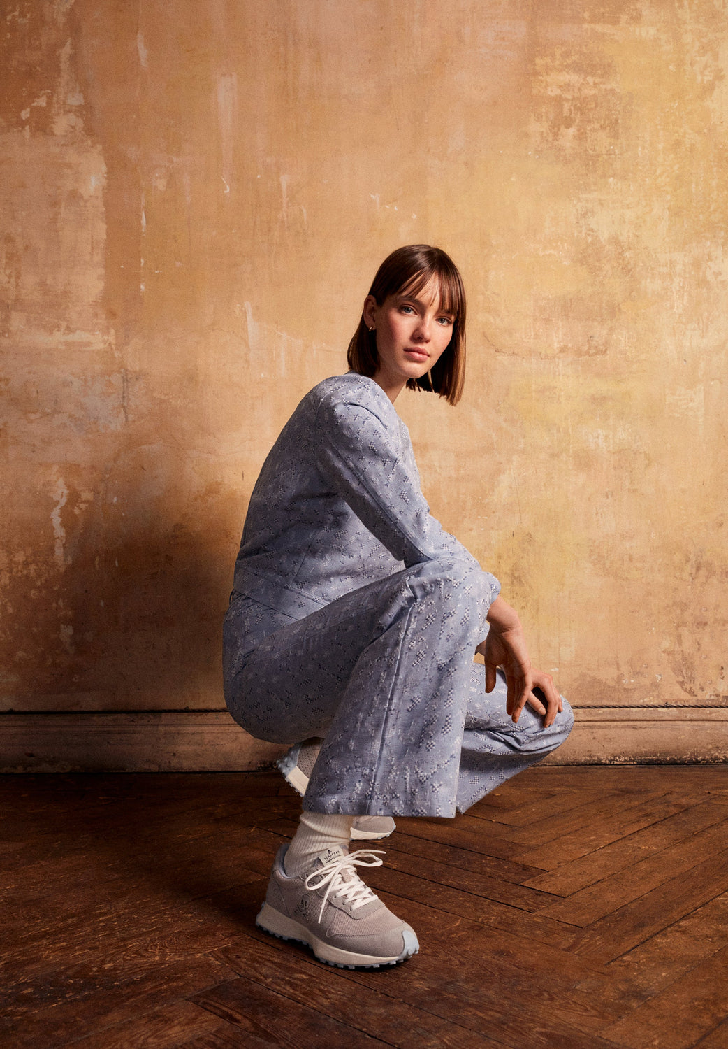 Sneakers con suela dentada y subida.