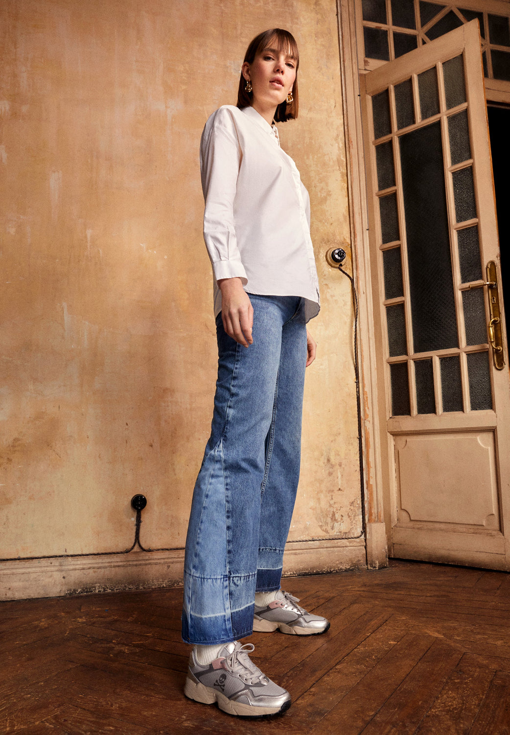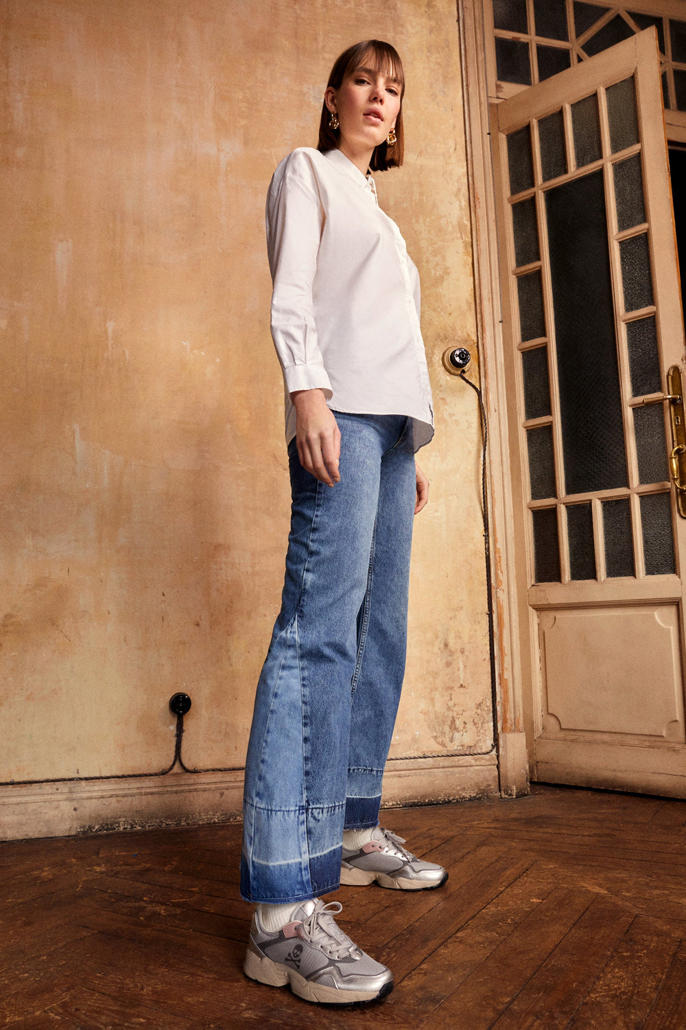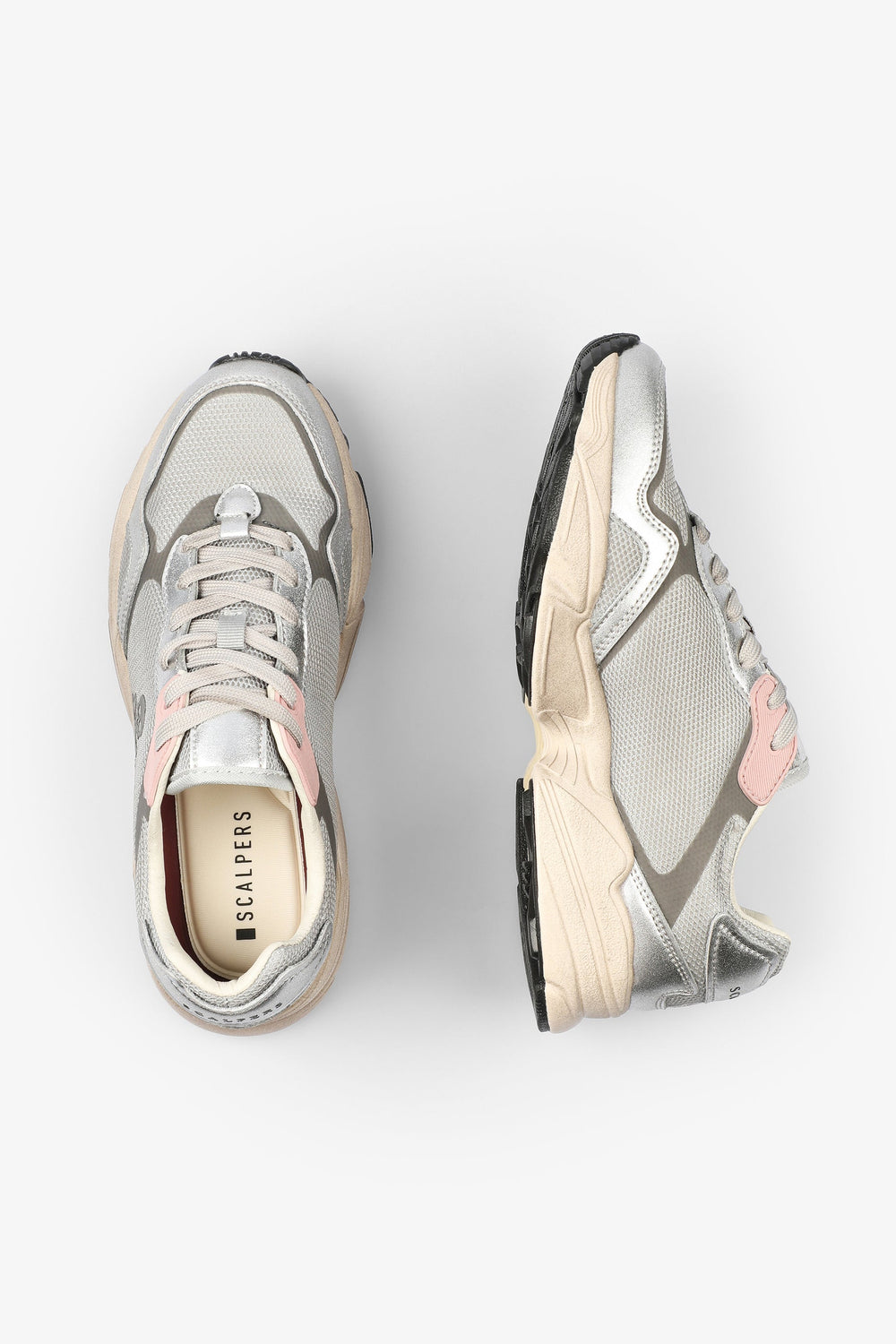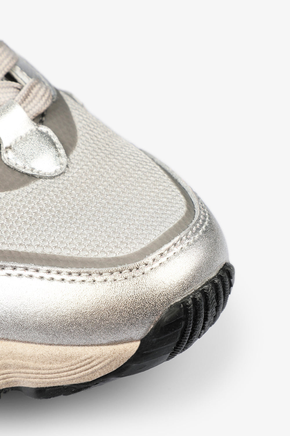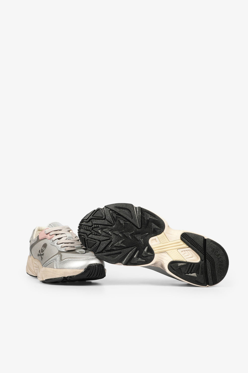 Sneakers con suela gruesa y detalles metalizados.