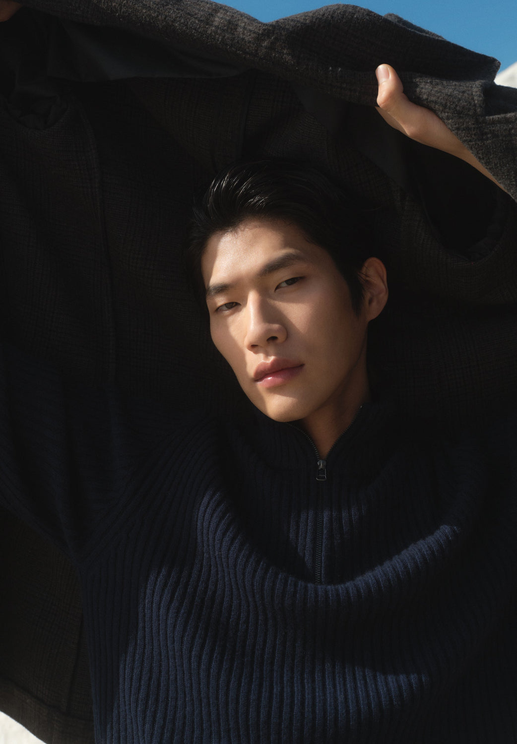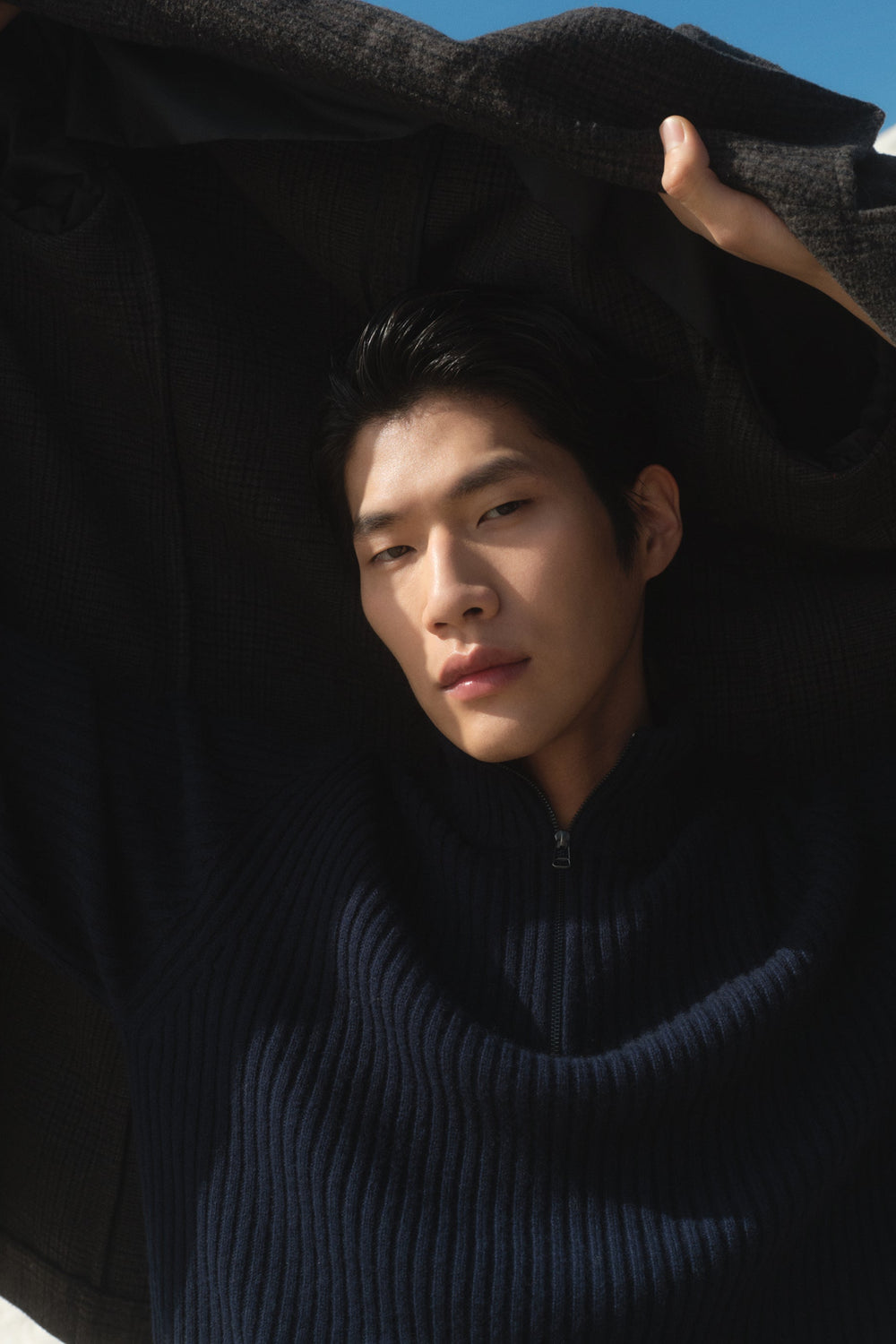 Jersey confeccionado en mezcla de cashmere y lana reciclada de canalé. Regular fit, cuello con cremallera y manga larga.