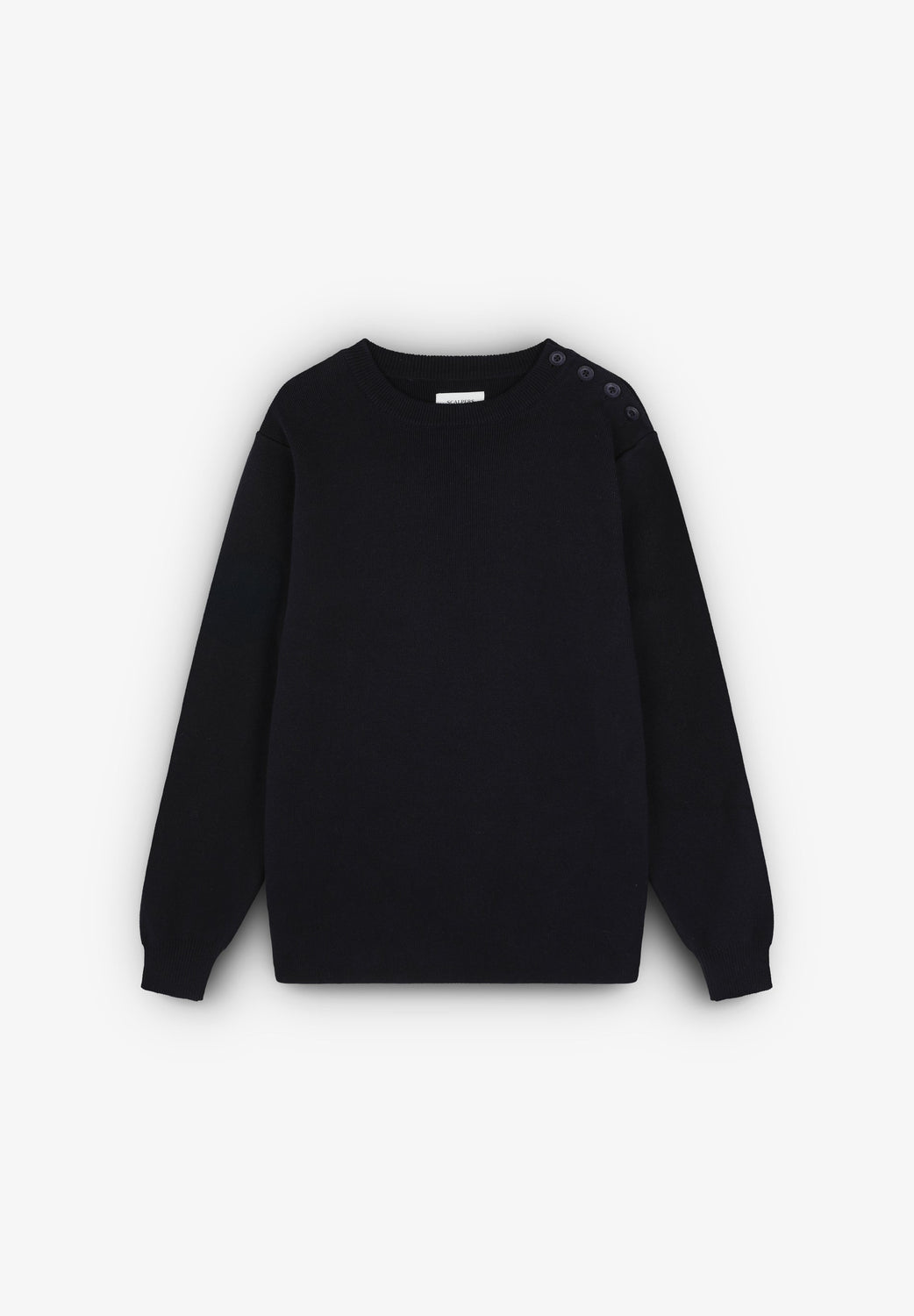 Jersey confeccionado en 100% algodón BCI. Regular fit, cuello redondo y manga larga. Detalle de botones en hombro.