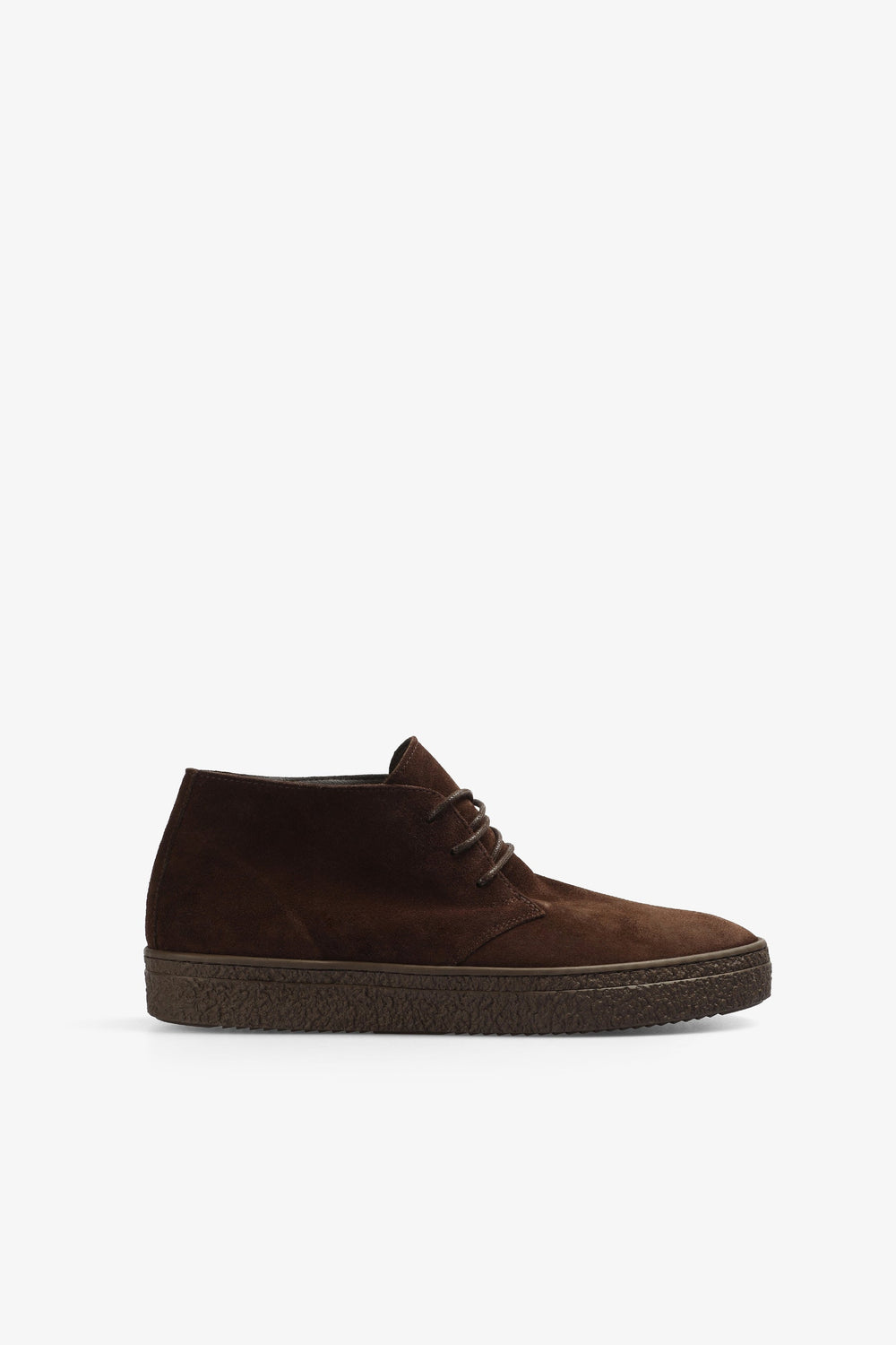 Zapatos tipo bota confeccionados en 100% piel terminados en ante. Cierre con cordones de piel y suela de goma.