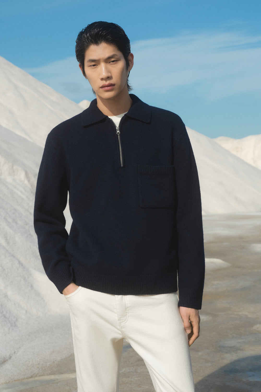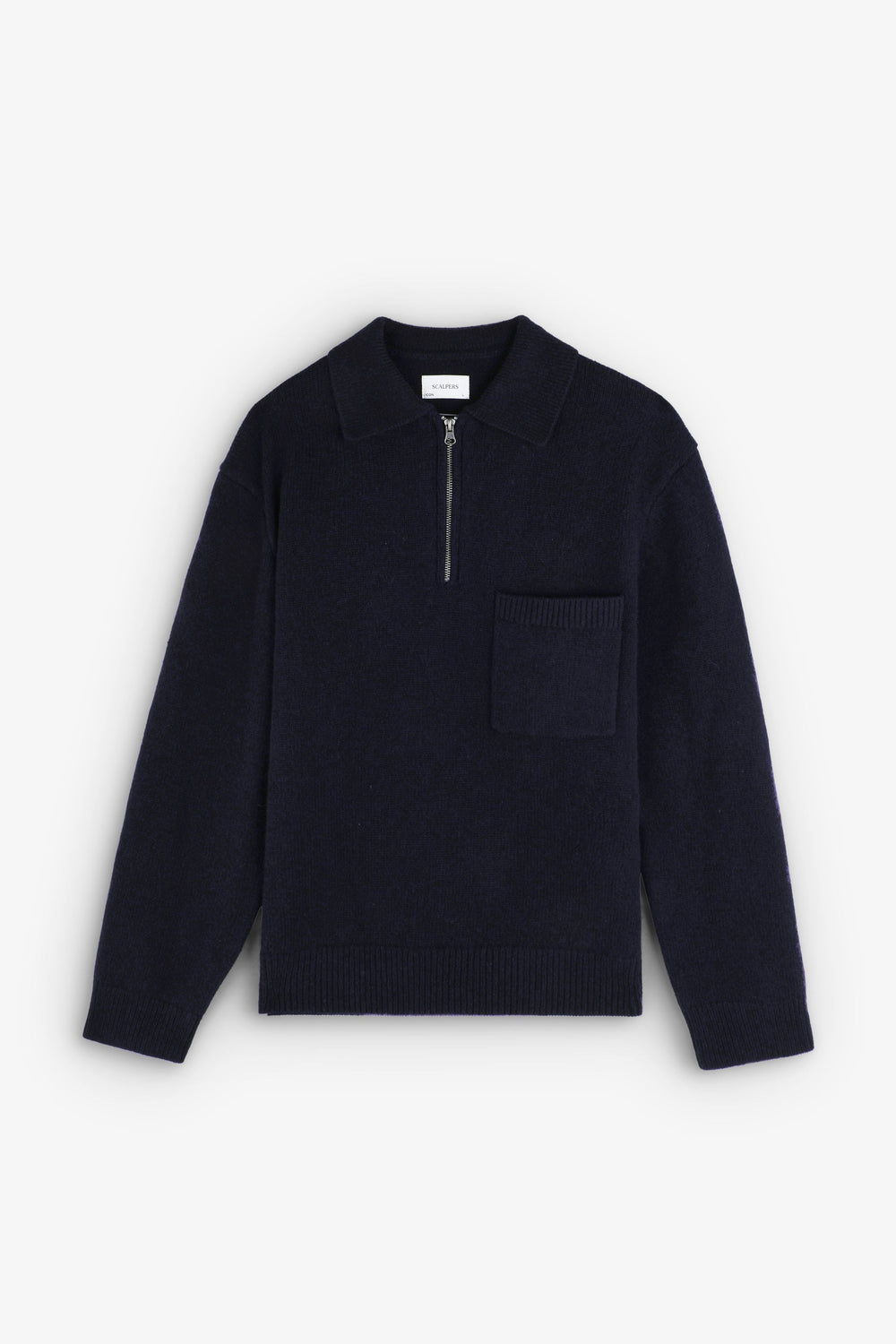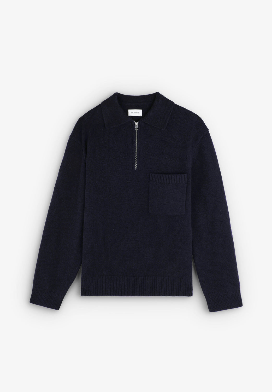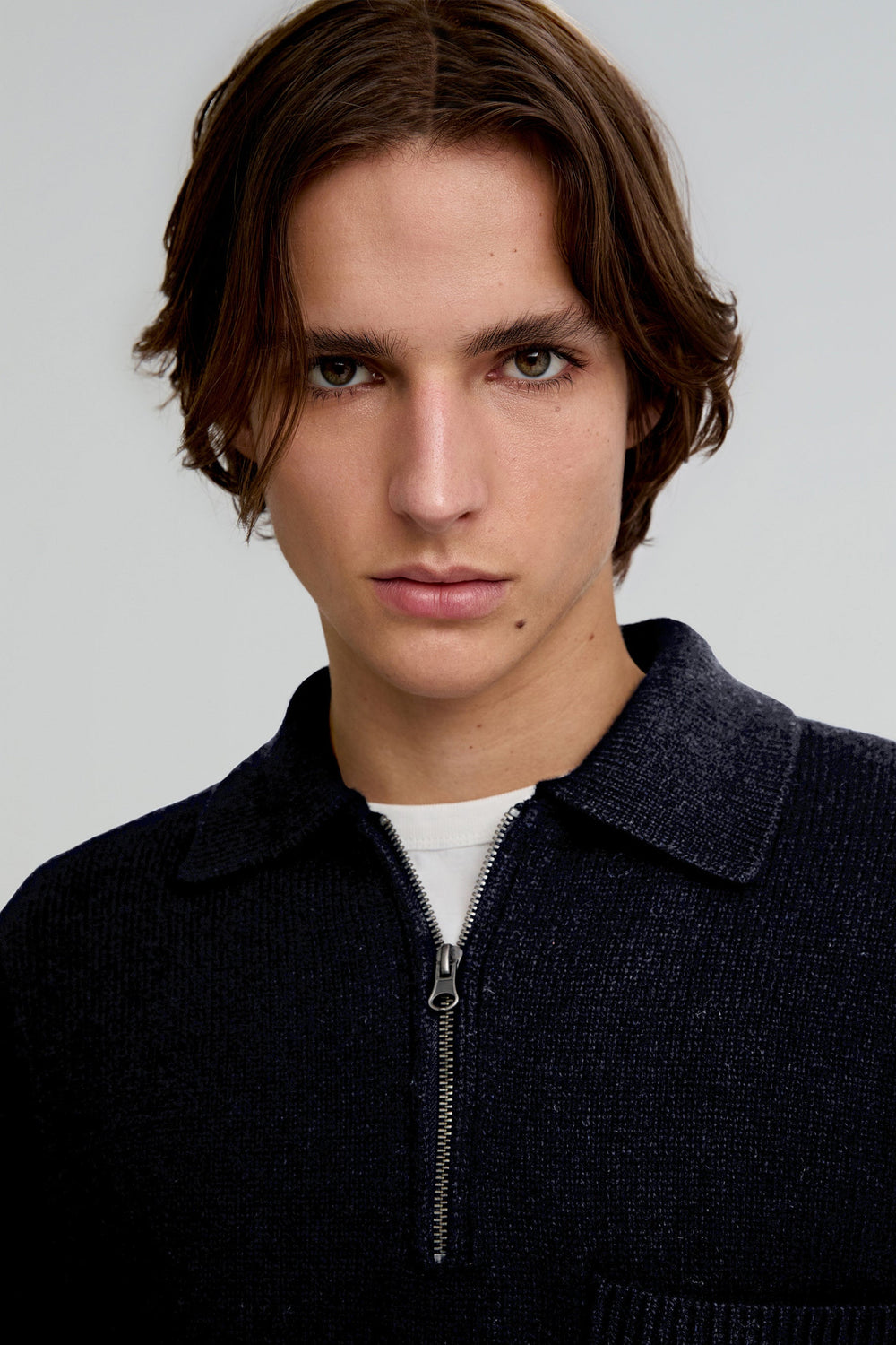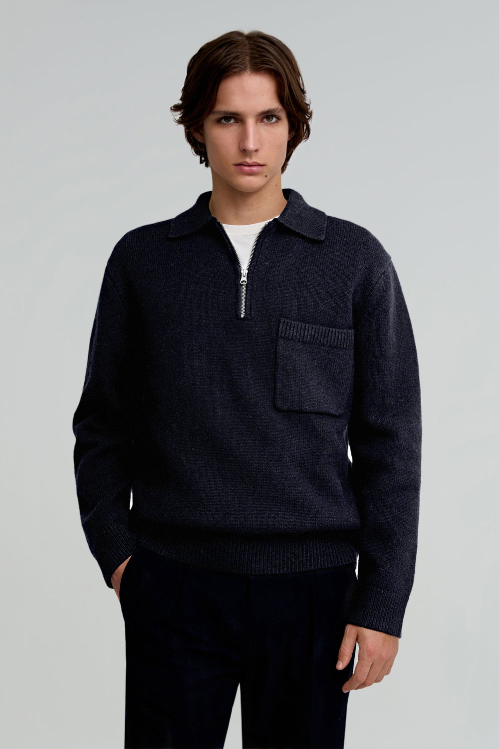 Jersey premium tipo polo confeccionado en 100% algodón. Regular fit, cuello clásico con cremallera y manga larga. Bolsillo en pecho con detalle de ribs.