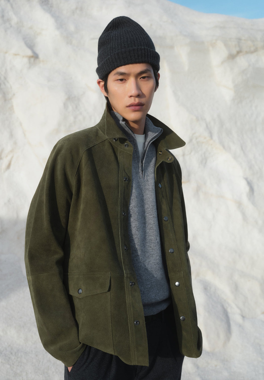 Chaqueta confeccionada en 100% piel. Regular fit, cuello ligeramente redondeado y cierre con snaps. Manga larga y bolsillos con tapeta y snaps.