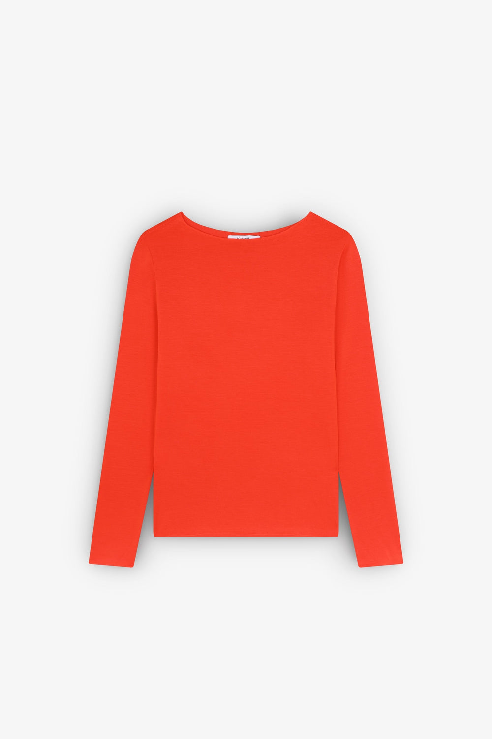 Camiseta básica flúor. Corte Slim Fit. Manga larga. Tejido ligeramente elástico. Cuello caja.