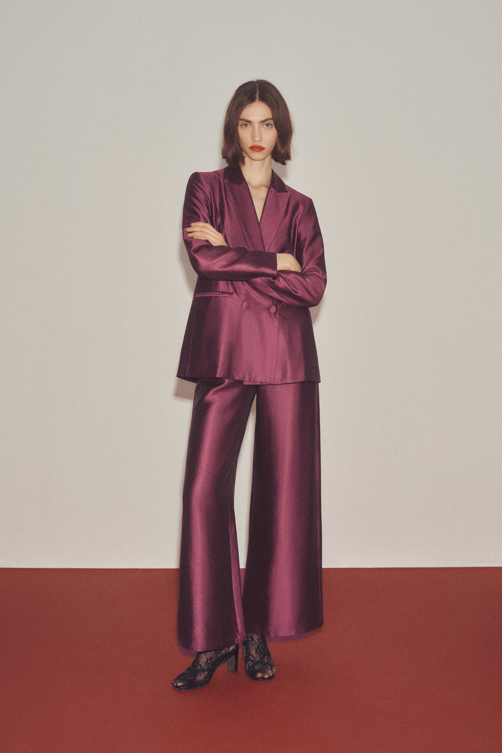 Pantalón confeccionado en tejido satinado. Corte culotte, cierre con cremallera lateral y bolsillos laterales.